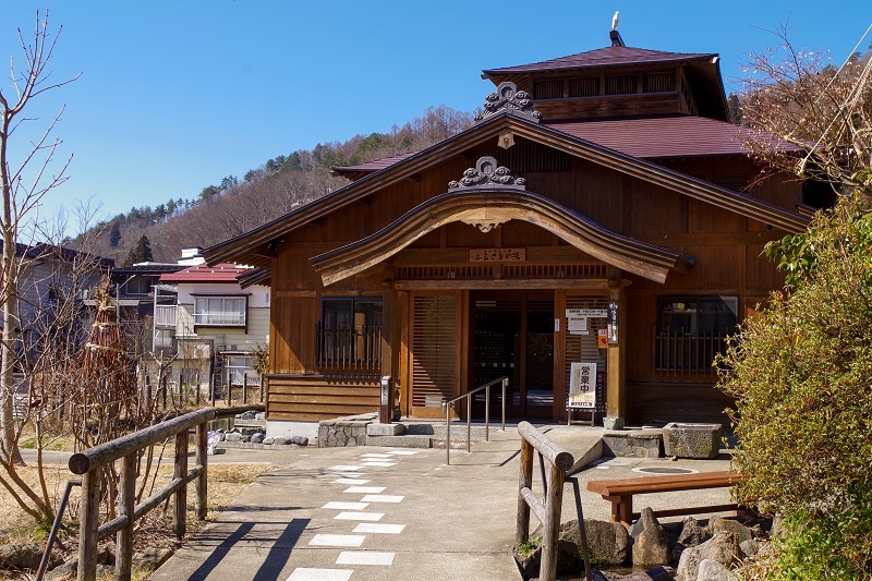 Nozawa Onsen has an unofficial (since an admission fee applies) “fourteenth” Soto Yu bath house: the Furusato no Yu. Located on the slope up to Ogama, this traditional, wooden building blends in perfectly with the little town’s atmosphere and history. It’s considered to be a gensen kakenagashi bath, whose natural hot spring water flows continuously from its original source. Compared to the other Soto Yu, this modern hot spring facility (it was built in 2011) is more spacious, including one outdoor bath and two indoor baths with different temperatures—an atsuyu (between 44 and 45 degrees Celsius) and a nuruyu (between 42 and 43 degrees Celsius)—for each gender. Basic amenities such as soap, shampoo and shower booths, are available as well.