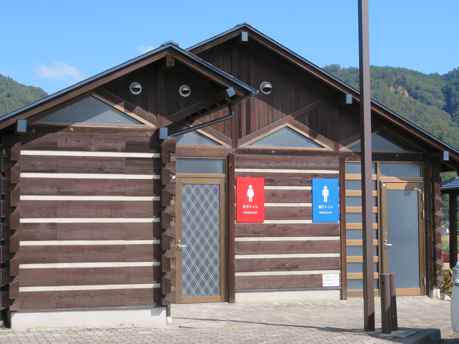 駐車場とトイレが設置されています。駐車場奥にはハーブガーデンが