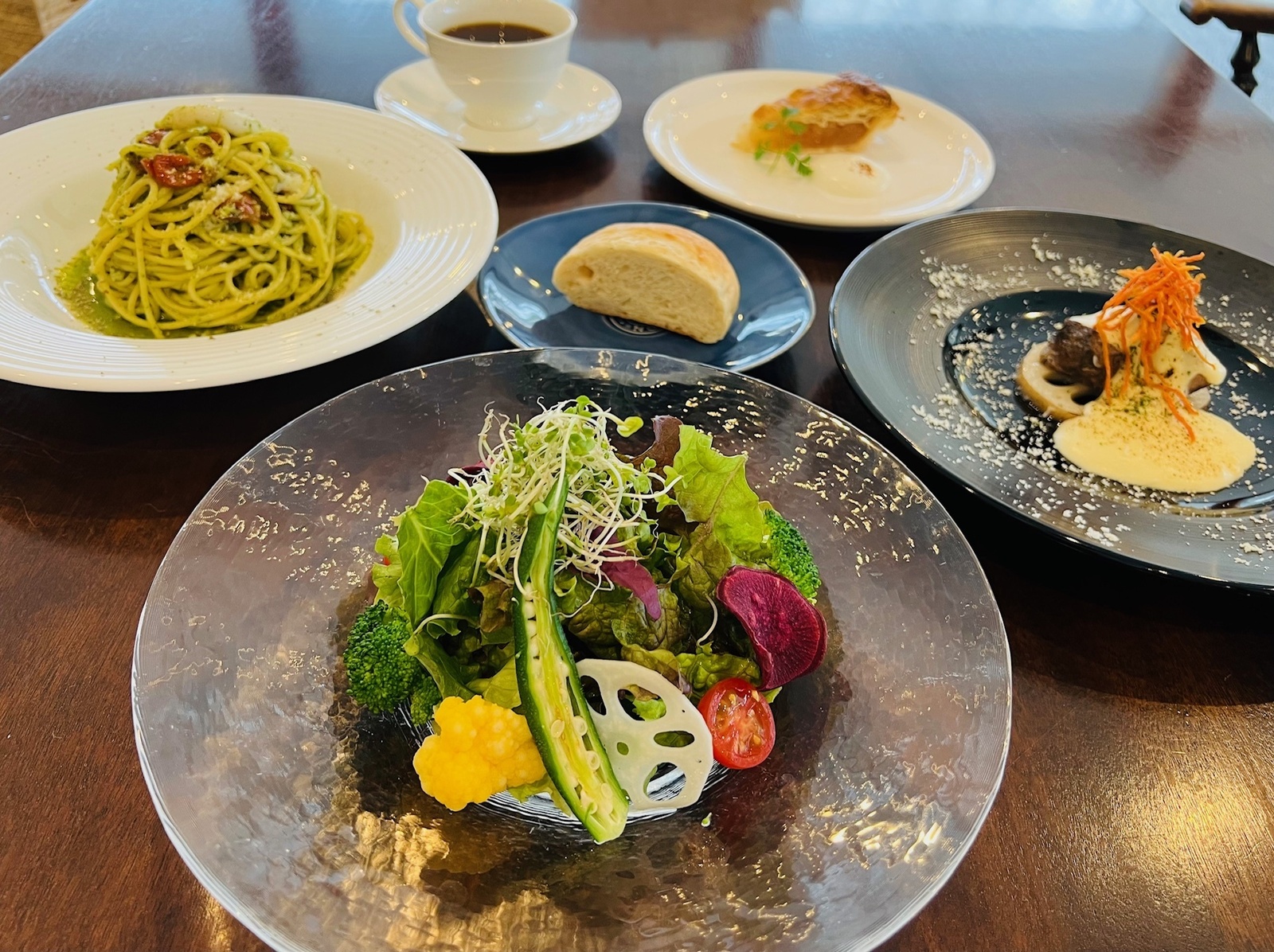 すずむし荘は、宿泊、日帰り温泉入浴以外に、イタリアンレストラン「Trattoria SUZUNE」で気軽なパスタランチを楽しめます。