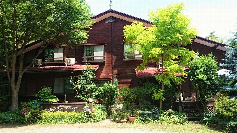 安曇野の森に佇む緑一杯のペンション。効能豊な天然温泉は貸し切りで好きなだけ入浴可能。寛げる和室もあります。