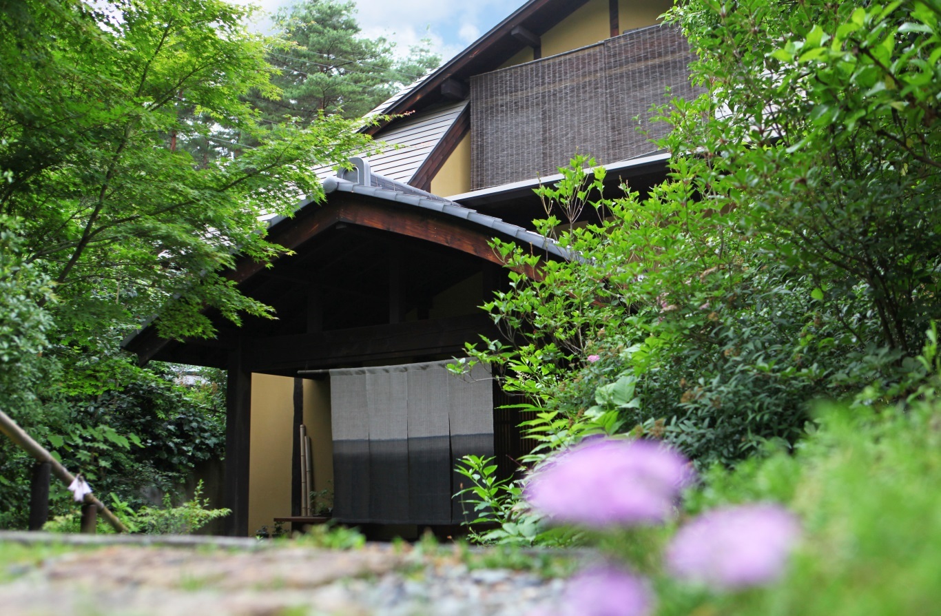 隠れ家風の趣を漂わせる古民家の宿。こだわりの器に盛られる季節食材を使う料理が美味。
