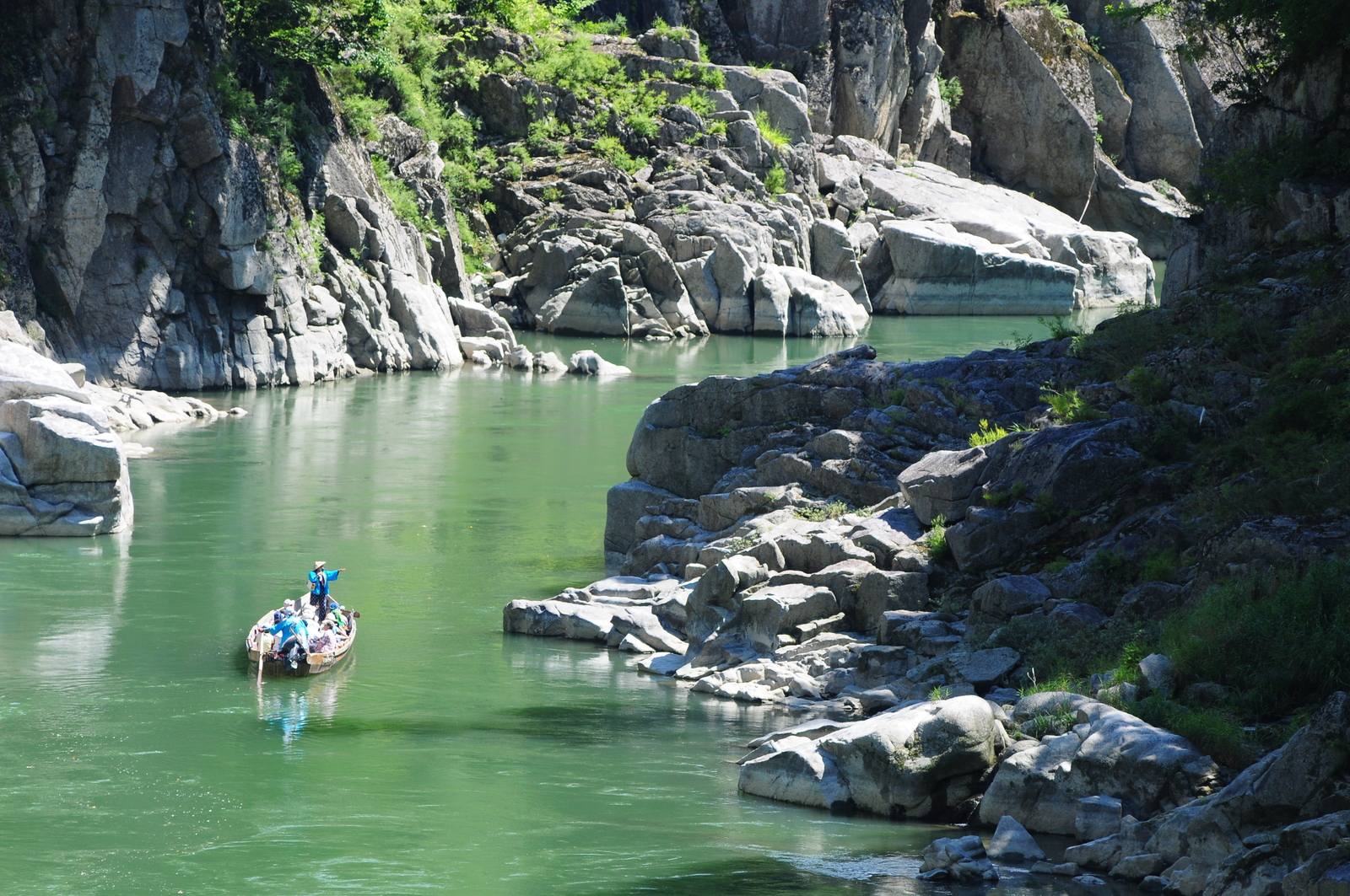 天竜奥三河国定公園、国の名勝指定地であり、書家の日下部鳴鶴が垂竿磯、姑射橋など天竜十勝を定めた。