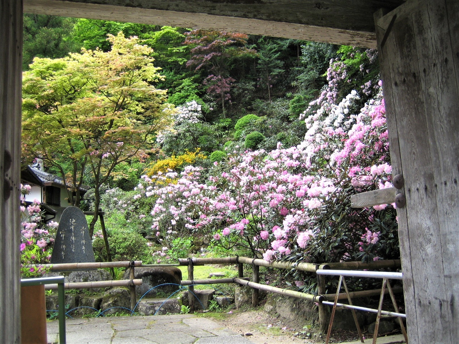 天竜川の流れを見下ろす高台にある禅宗の寺。境内は自然庭園で、しゃくなげの群落が見事です。