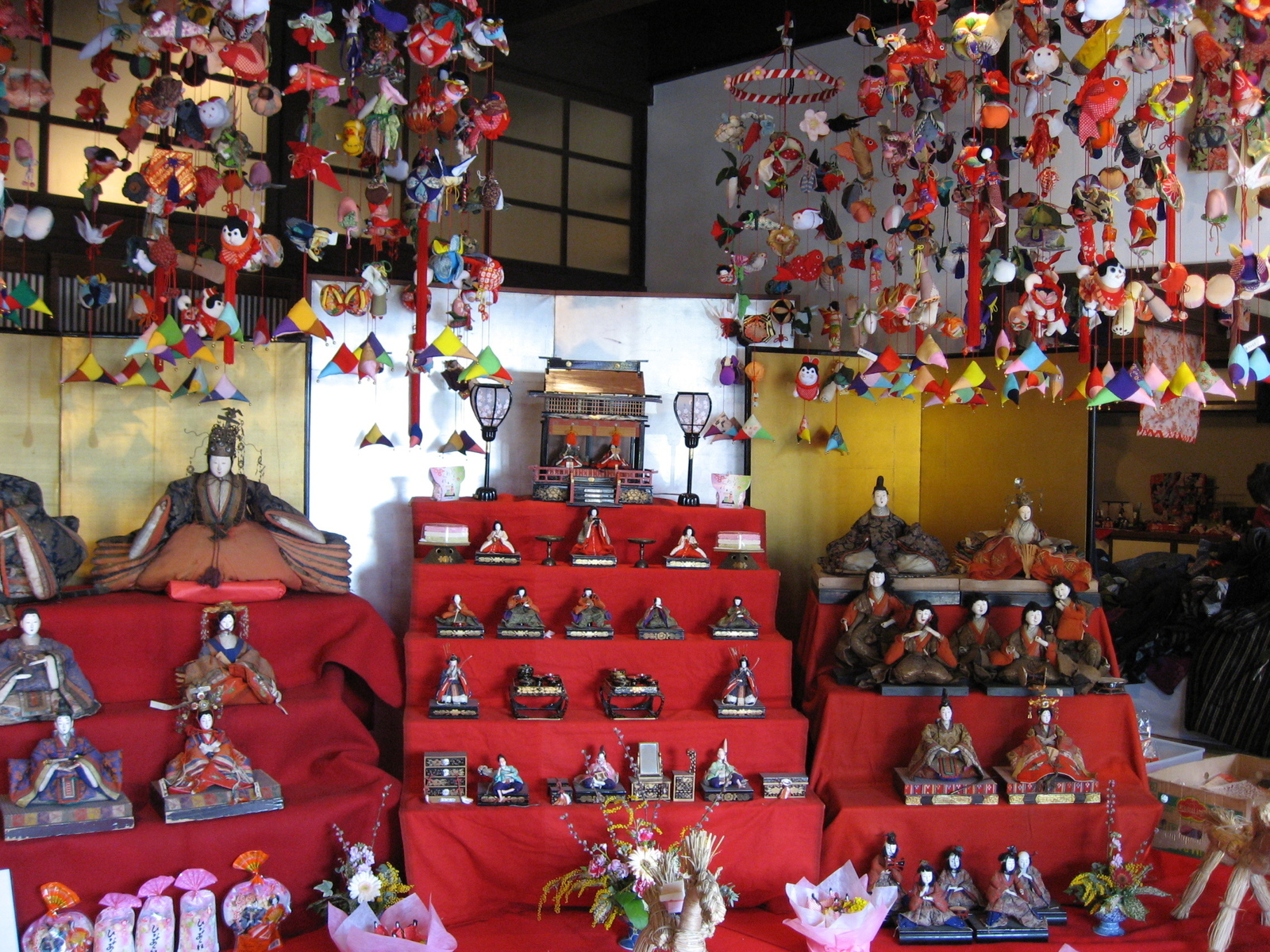 北国街道小諸宿の本町通核店舗において、様々な時代のひな人形やつるし雛が冬の街道を彩ります。