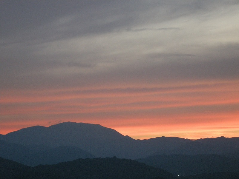 夕刻、山並みが濃紺に染まる頃の夕日が美しい絶景ポイント。