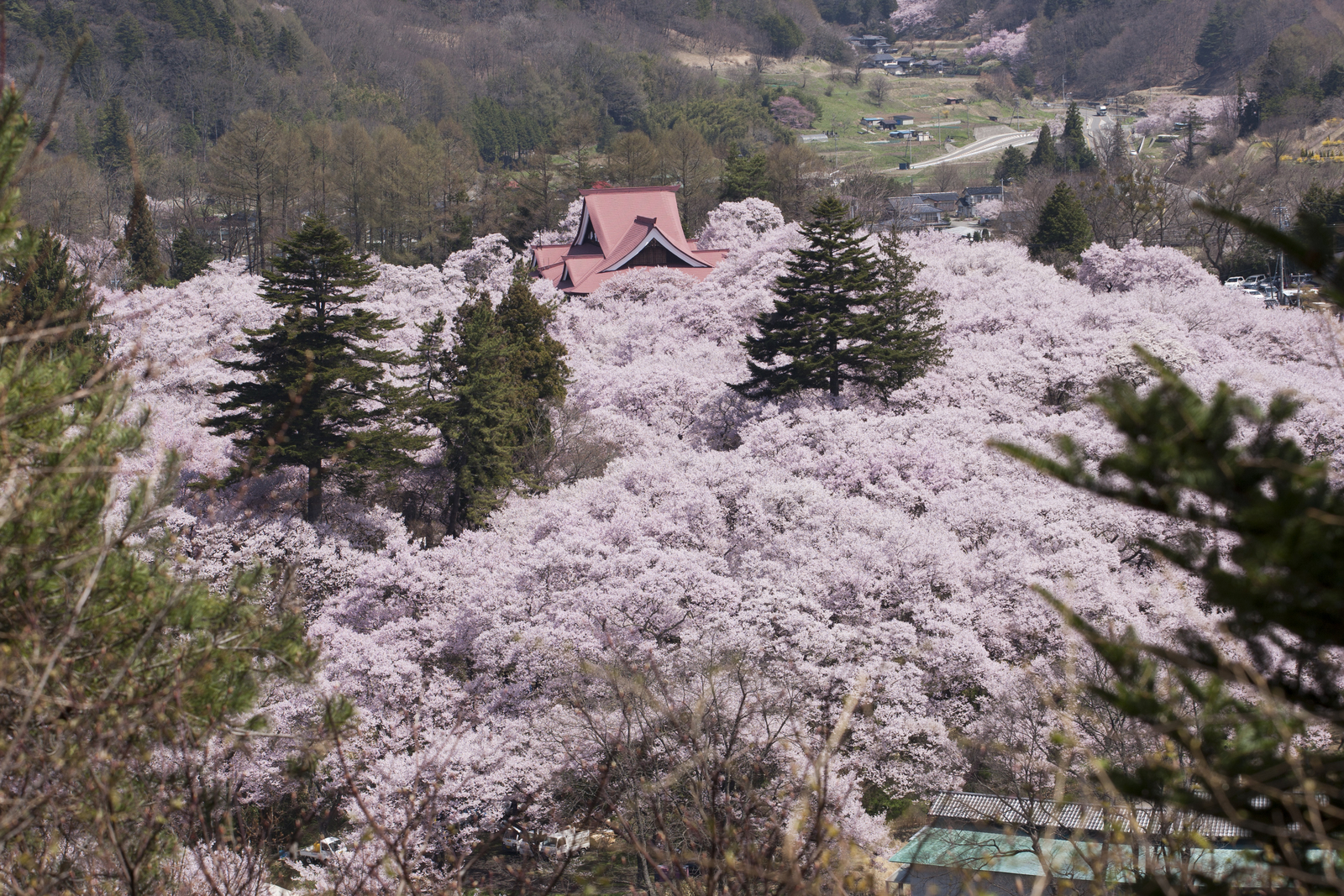 約1,500本の「タカトオコヒガンザクラ」は小ぶりで赤みが強いのが特徴。天上を薄紅色に覆う桜は、古くから「天下第一の桜」と称され全国的に有名で「さくら名所100選」にも選ばれています。夜になると、ライトアップされた桜は昼間と違った艶やかさで人々を魅了します。日中は各種イベント、伝統芸能やご当地グルメが楽しめます。