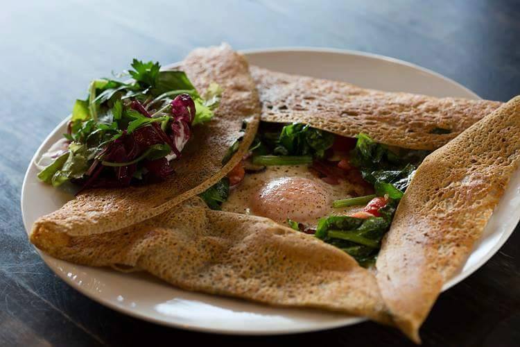 もともとガレットはフランス北西部で愛されてきた郷土料理。そば粉に水と塩をいれて寝かせてから薄くのばして焼き、生ハムや野菜などを乗せて食べます。伊那市では、市内をはじめ伊那谷産のそば粉を使って仕上げる風味豊かなガレットを味わうことができます。