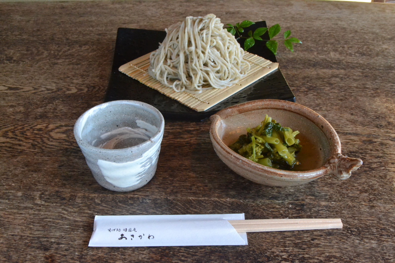 安曇野の特産であるわさびの花芽を薬味として、おそばと一緒にお召し上がりいただきます。静かな山麓にあり四季折々の草花が楽しめる1,000坪の庭が里山を感じさせてくれます。