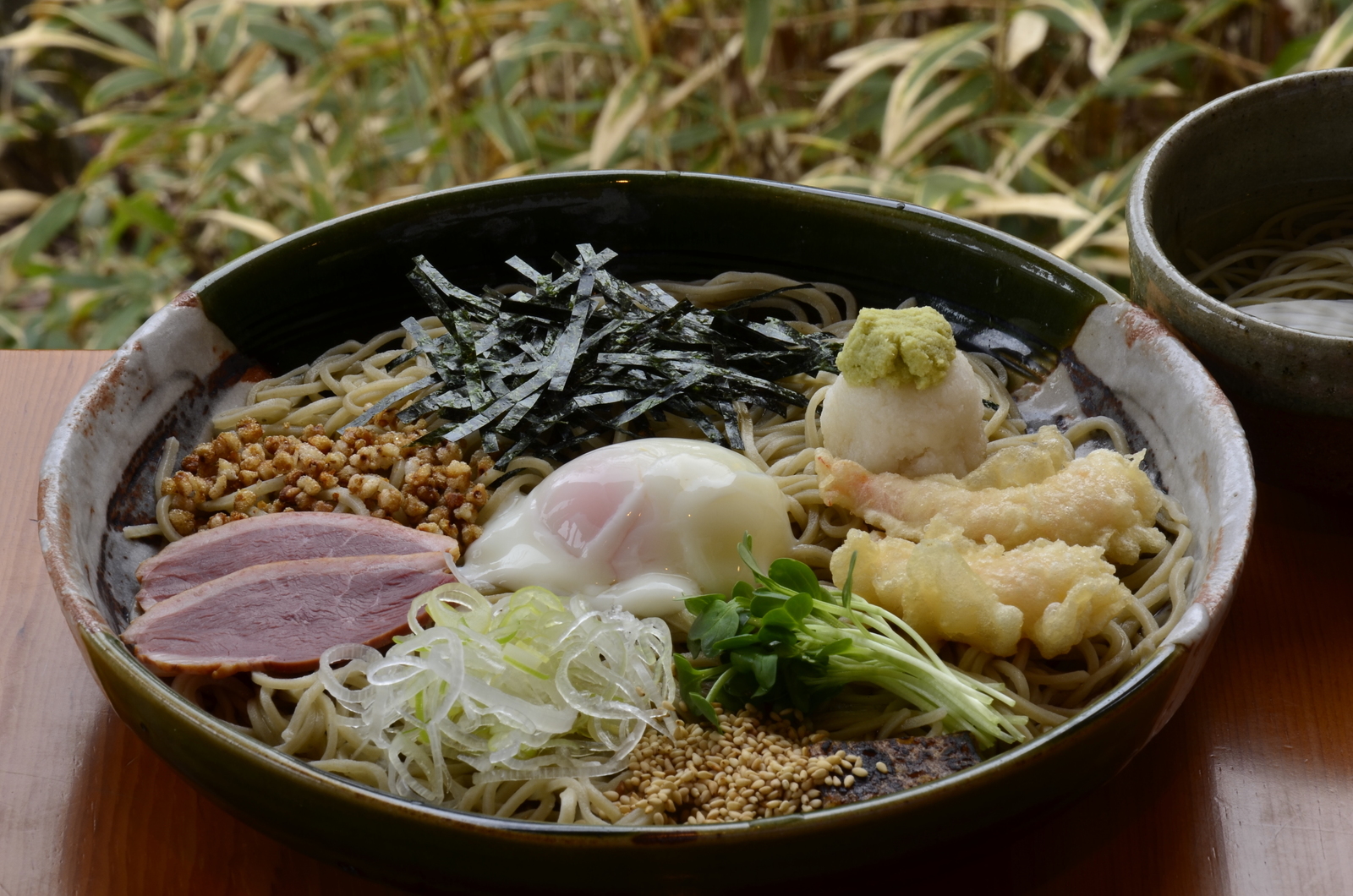 信州産の玄そばを石臼挽き。そば打ち、だしとりなど調理の全工程に安曇野の地下水使用。