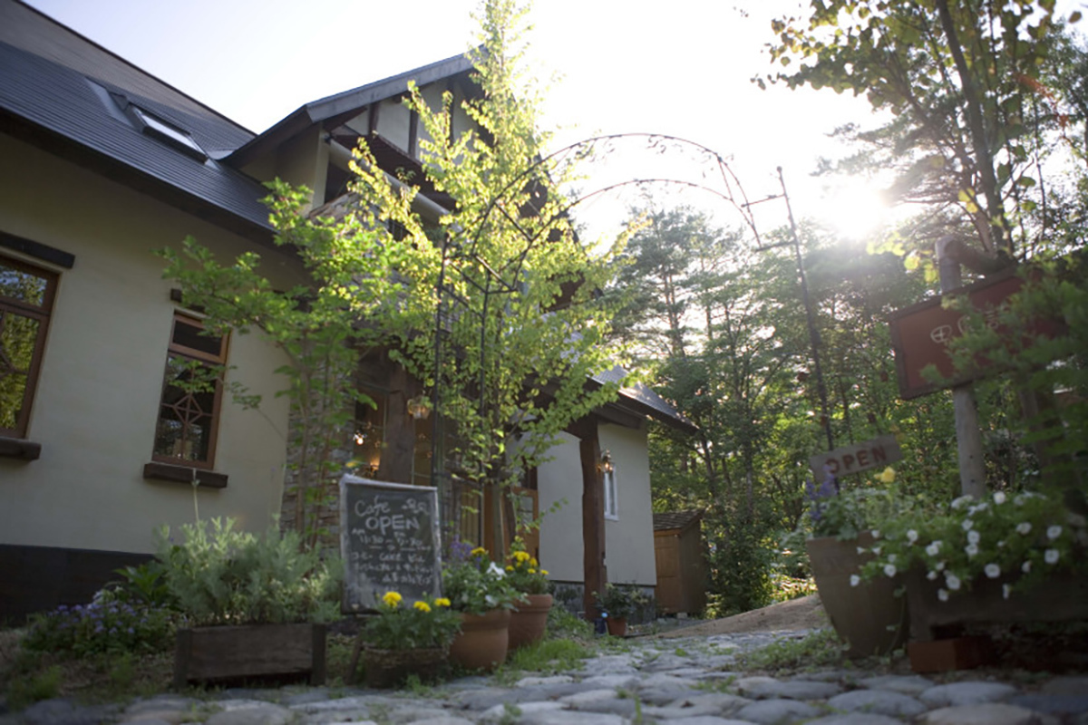 白馬の名鉄別荘地の静かな森に佇む、1日1組限定の小さなホテル。木とレンガの温もりを生かし、オーナーが選んだアンティーク雑貨が並ぶ室内はヨーロッパの山荘のような雰囲気。薪ストーブを囲むリビングやアンティーク家具が並ぶダイニングは、海外の絵本から抜け出してきたかのようです。「別荘に来たつもりでのんびりとお過ごしください」とオーナー夫妻。2階にベッドルームやプライベートリビングがあり、大勢で利用する場合は2階全体を使えるプランも。