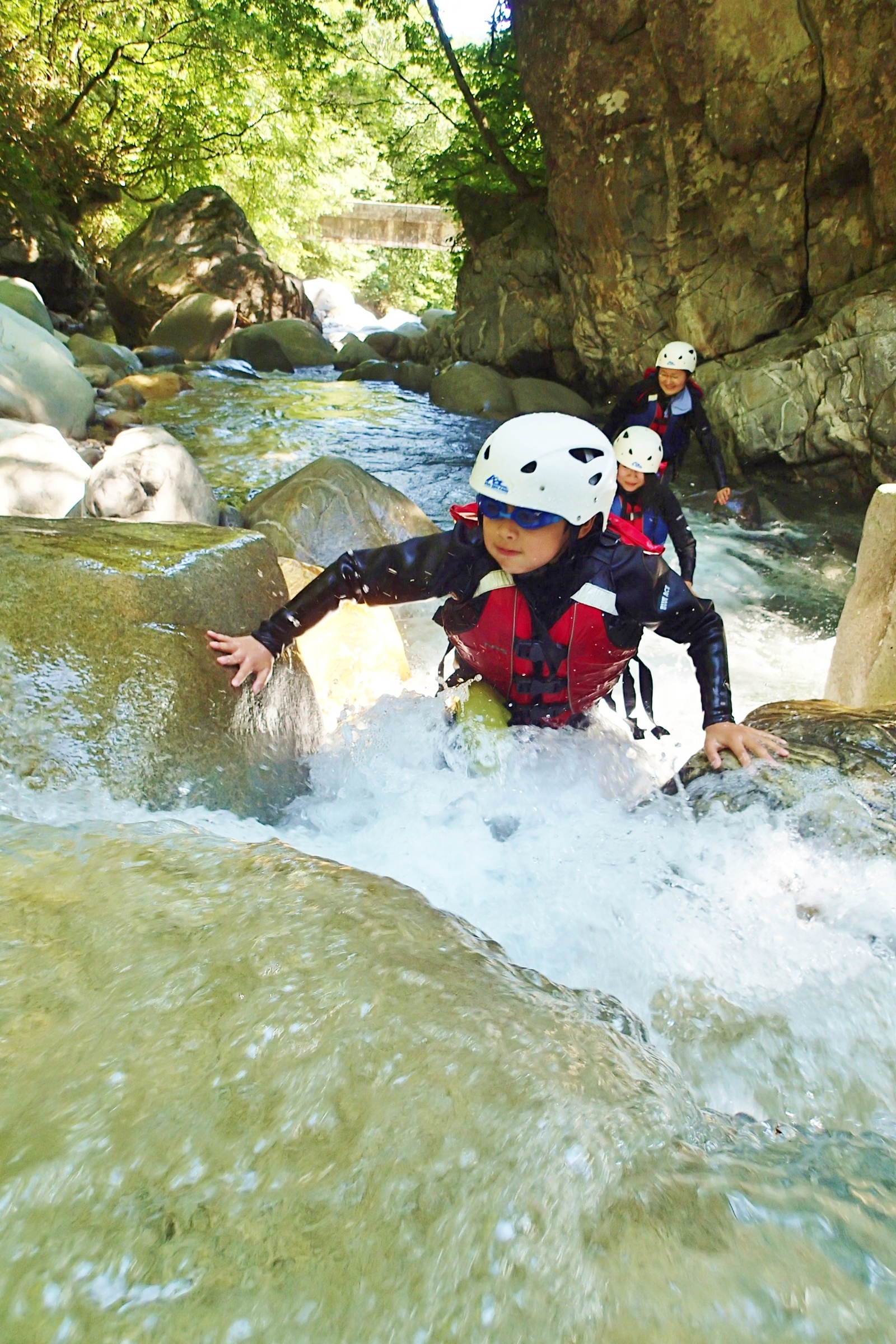 午前『シャワーウォーキング』(天然のウォータースライダーに乗り、岩に登ったり、淵で泳いだり、滝壷へジャンプをしながら沢を登っていく)、午後『ダッキーボート』(1人~2人乗りの空気入りカヤック。カヌーより安定しているので、初心者でも簡単に操作ができる)のたっぷり遊べる満足まんぷくのプラン。思う存分川遊びを満喫しよう!!!うれしいランチ付き♪