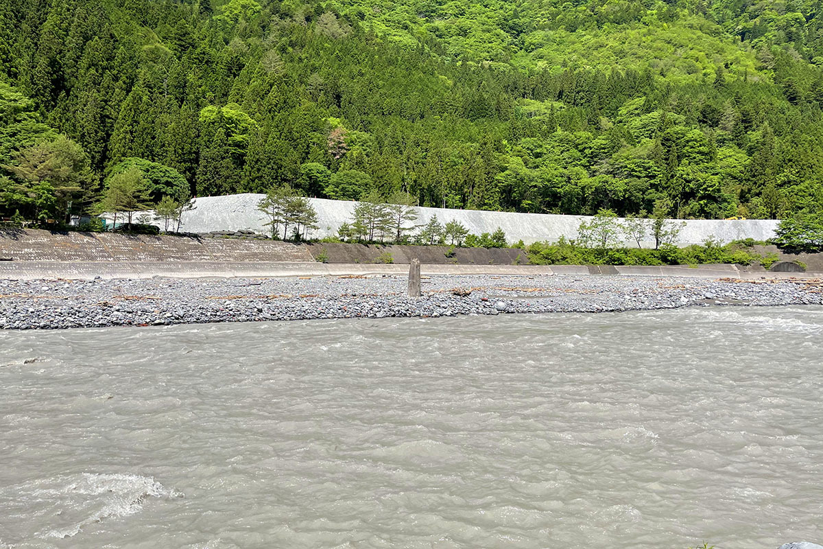 約1300年前の大地震による河川氾濫で土砂に埋もれたと推測されている杉の巨木。