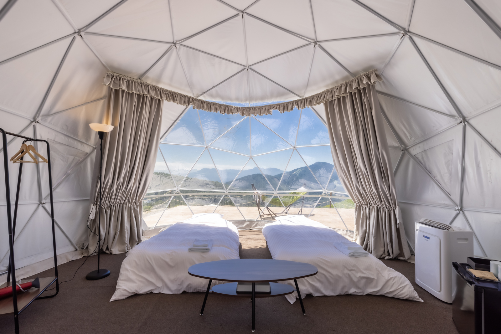 雲海発生率62%(2020年)のSORA terrace行きの竜王ロープウェイ乗り場から徒歩5分のところにワンちゃんも一緒に泊まれるグランピングリゾートがオープンしました!山頂の様子を見ながら、雲海が発生しそうになったらすぐにロープウェイに乗ってSORA terraceへ行けます。日が暮れたら、焚火をしながら夜空を見てゆっくりとお過ごしください。