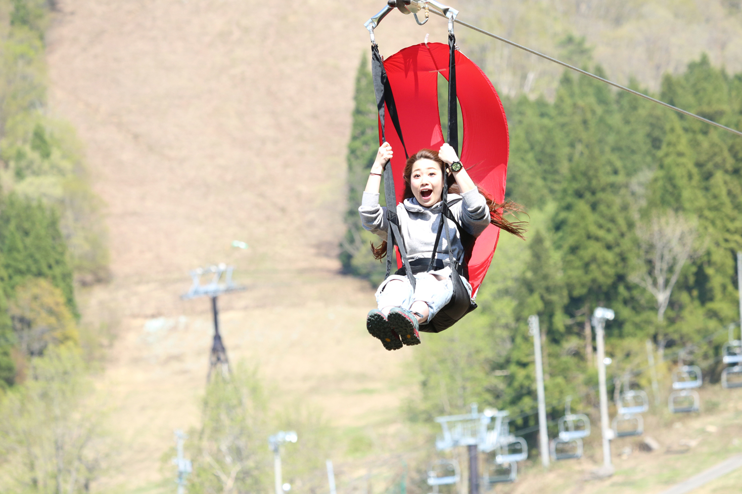 全長652m、高低差122mのコースを最大時速約70kmで大滑空するアクティビティ。爽快感とスリルにやみつき必須です。簡単に装着できるシート型の専用のハーネスは小学生以上が対象で、体重は25kg~110kgまで。