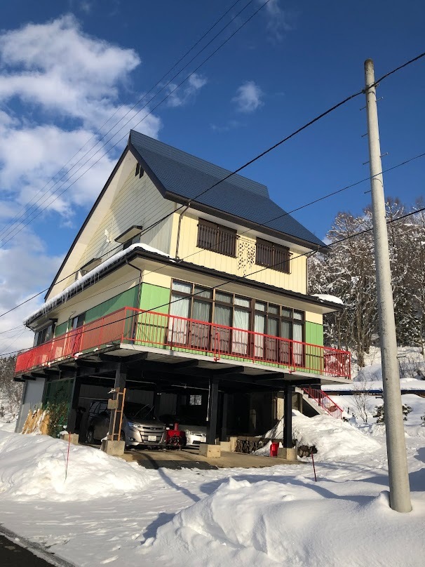 無料の駐車場(自転車とバイクは屋根付駐車あり)、飯山駅までの送迎があります。