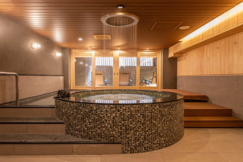 63 ㎡の完全プライベート空間に、「天然温泉を全身に浴びるスチームサウナ」とサウナ の本場フィンランド製「ロウリュサウナ」の2種類のサウナ、そして源泉掛け流しの天然温泉風呂を備えた贅沢なつくり。