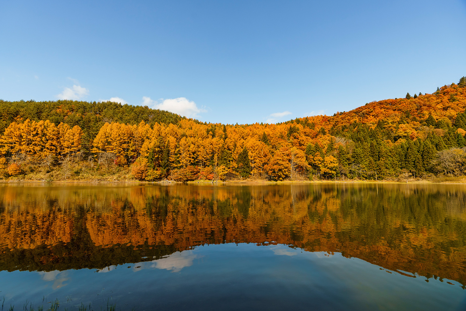 三方を山に囲まれ、季節ごとに違った景色を見せる神秘的な湖。長野県の自然百選の一つ。1周2.2kmの周遊コースも配されています。秋は金色に染まるカラマツが見事。
