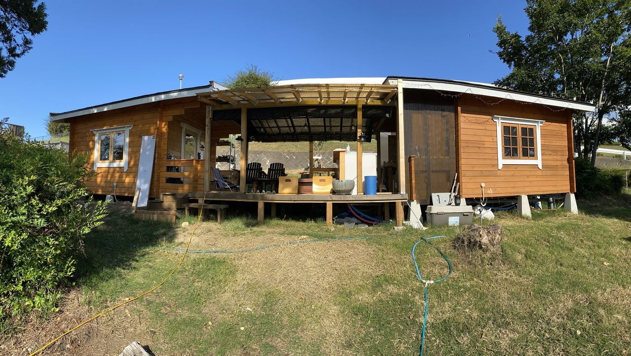 北アルプス連峰が一望できる高台の約500坪の敷地に建つプライベートキャンプ施設。