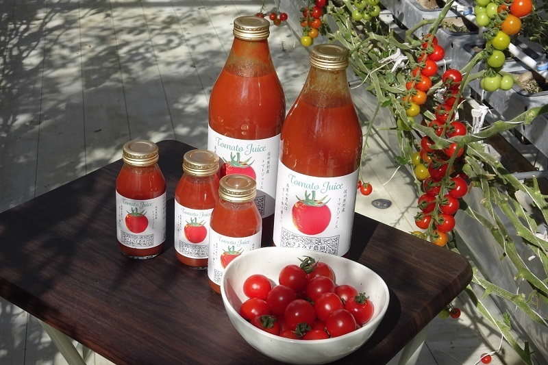 高原の寒暖差を最大限活かして、美味しいミニトマトを生産しています。ハウスの目の前で、その日収穫された新鮮なミニトマトを販売しています。ミニトマト100%のトマトジュースも販売しています。