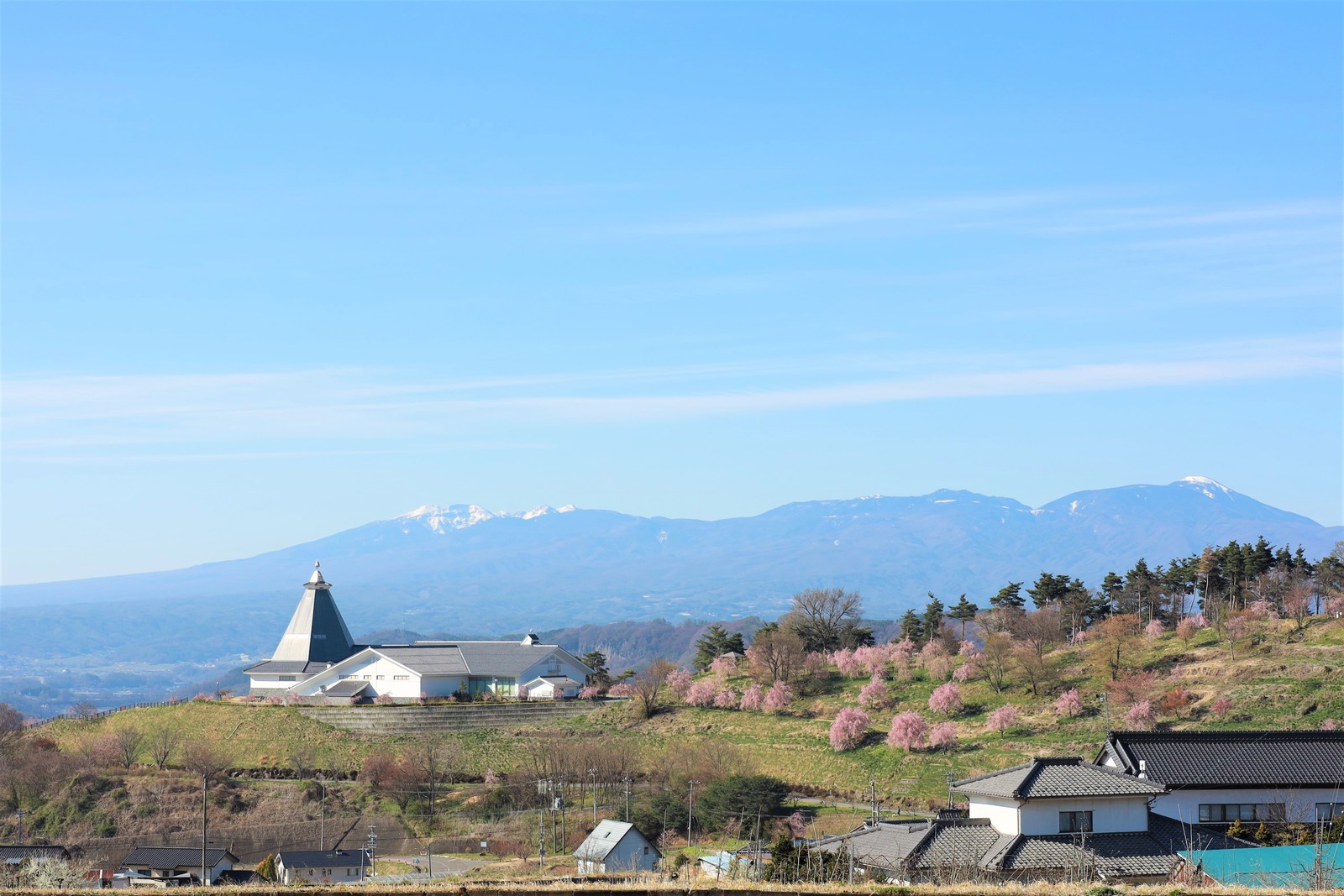 小諸の固有の小諸八重紅枝垂桜をはじめてとする9種類の桜が咲き誇る隠れた桜の名所だ。一帯が「富士見城」という名の城址だけあって、天気が良い日には、富士山、八ヶ岳、北アルプス、浅間山を見渡すことができる。