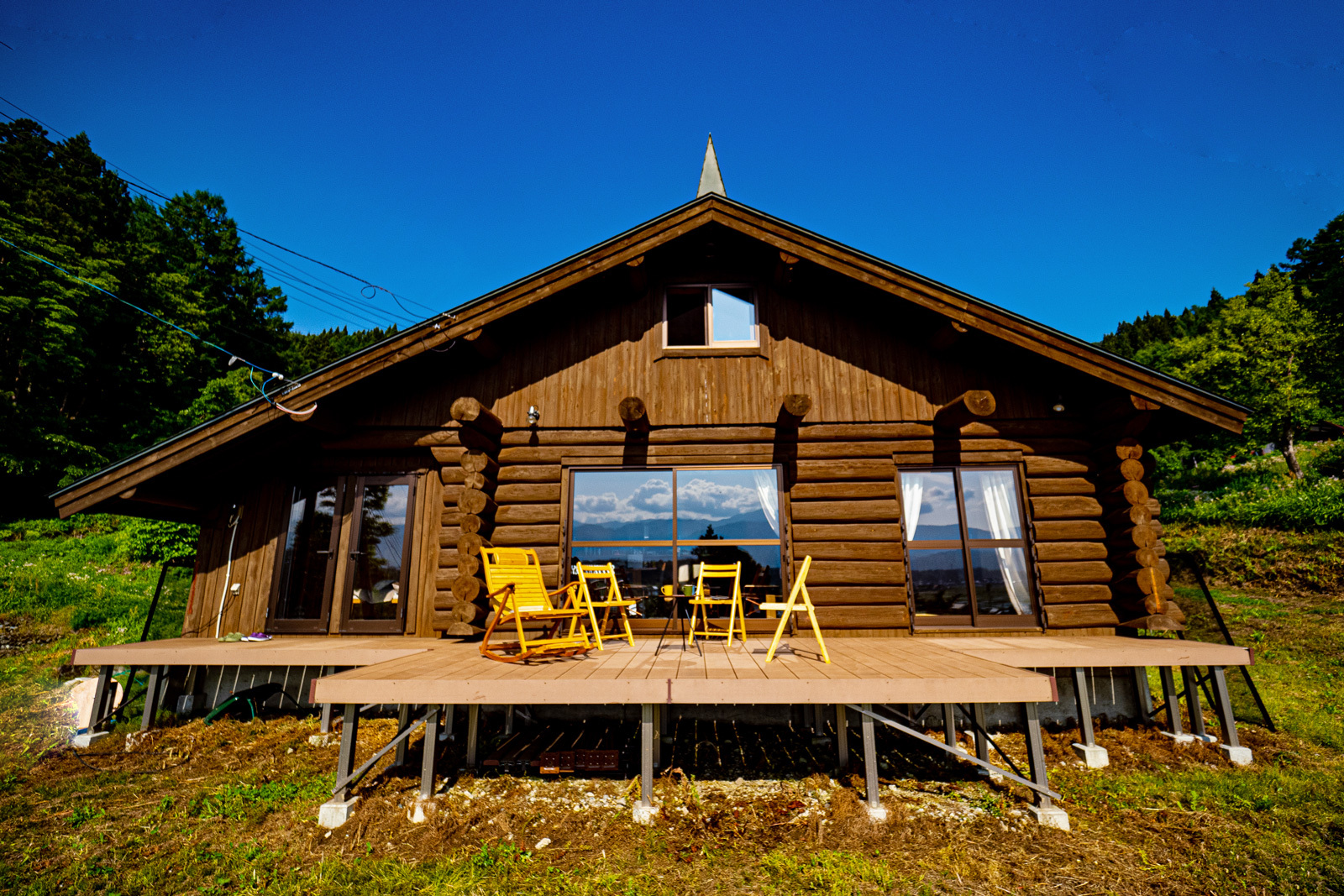 1日1組の貸別荘。田んぼの見えるログハウスでのんびりと里山の休日をお過ごしください。