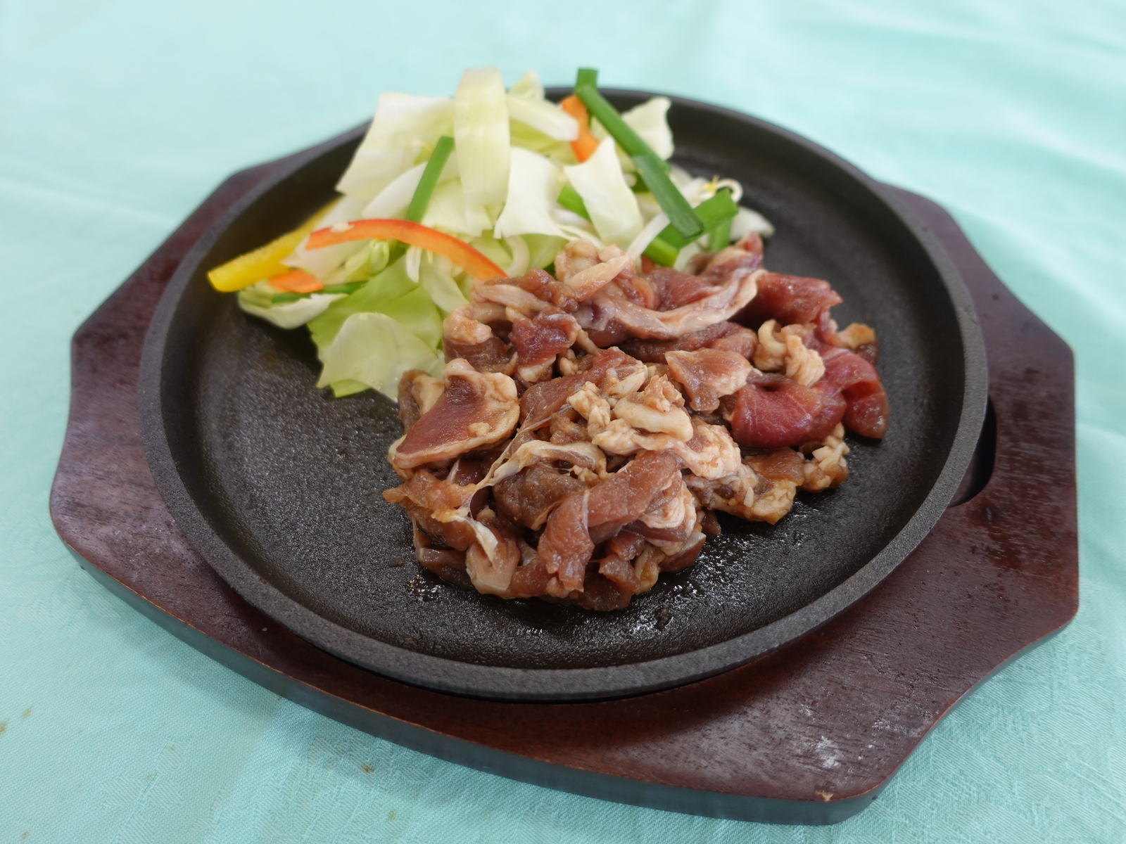 大蒜、生姜を聞かせた自家製タレに1日付け込み柔らかく仕上げました。野菜は地元蓼科野菜を使い地元にこだわった料理です。