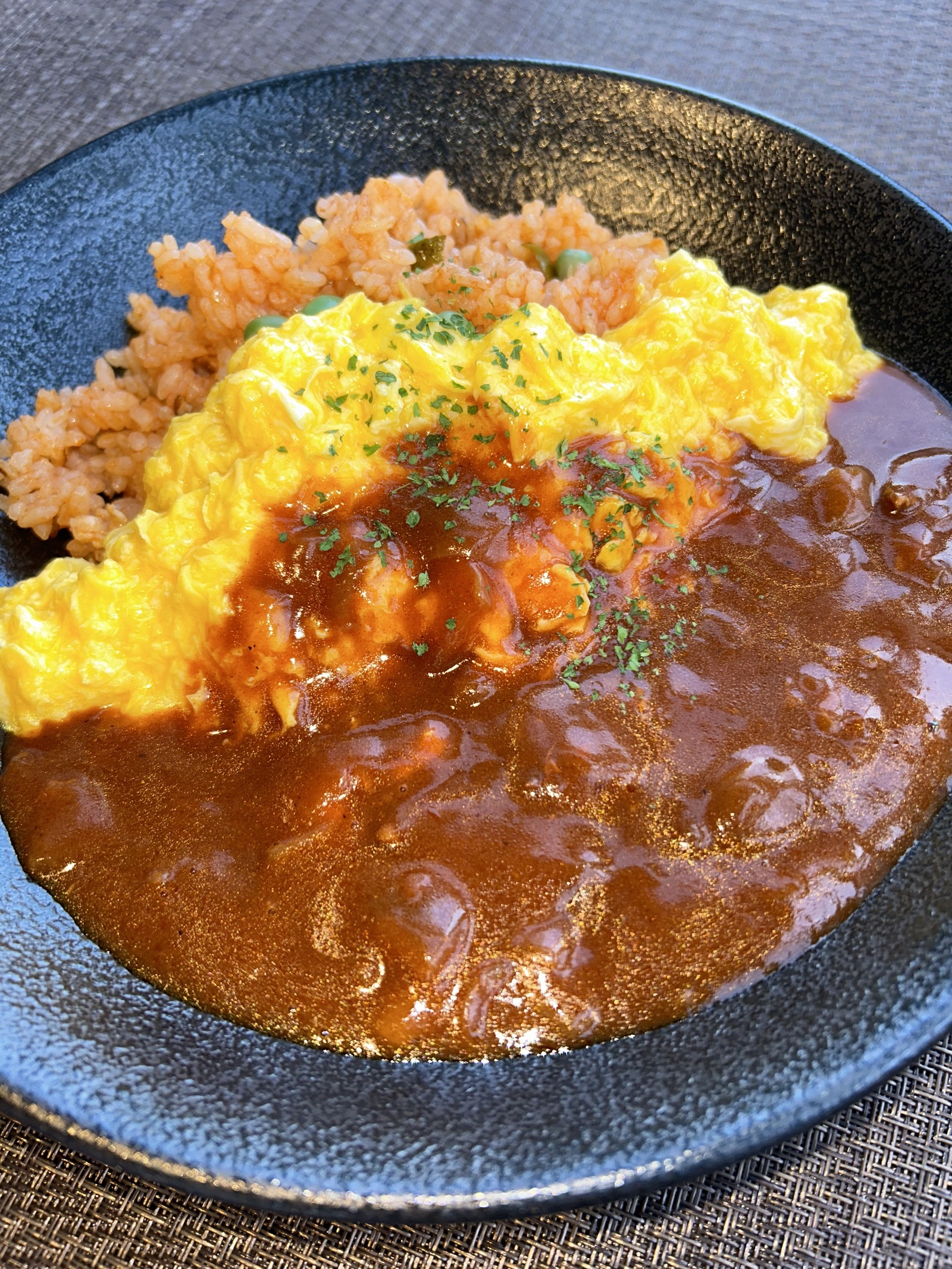 ふわとろたまごとハッシュドビーフのコラボレーションがチキンライスと相性抜群で老若男女問わず人気の一品です。
