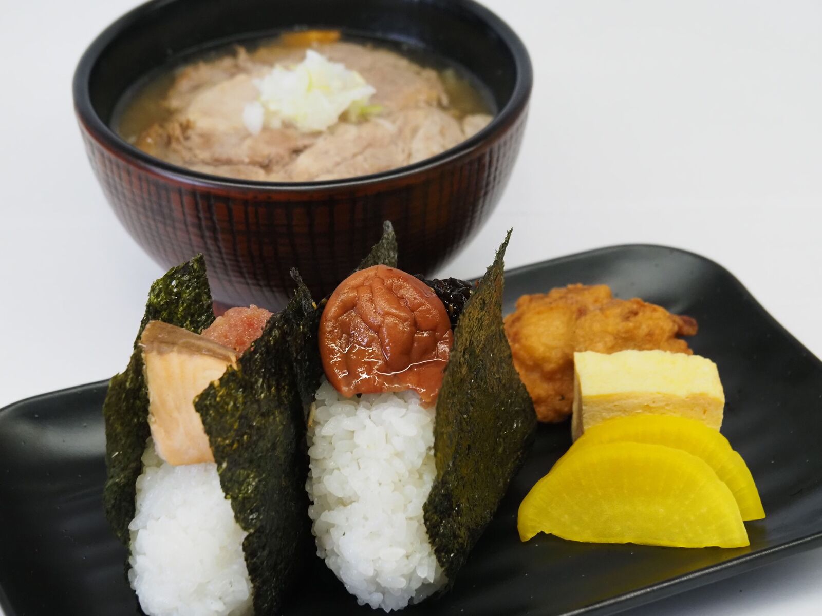 お好みのおにぎり2個と豚汁、唐揚げにだし巻き卵がセットになった、ボリューム満点な一押しメニュー。おにぎりには信州産のブランド米使用し、豚汁には信州味噌&信州オレイン豚のチャーシューを乗せ、信州産にこだわりました。おにぎりは20種類あり、定番メニューから信州産メニューまで、幅広く販売しております。