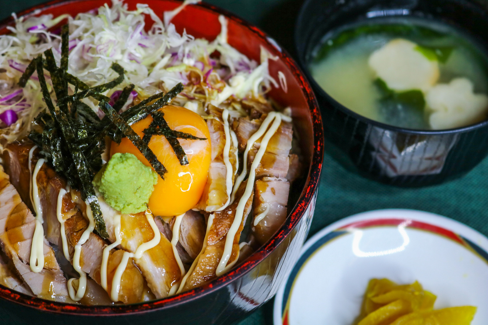 スキーやスノーボードで疲れた身体にスタミナ満点のチャーシュー丼!厳選した豚肉にニンニクを使った秘伝のタレでジックリと煮込んだ一品です。ガツンとチャーシューにマヨネーズと卵黄の組み合わせが癖になること間違いなし。