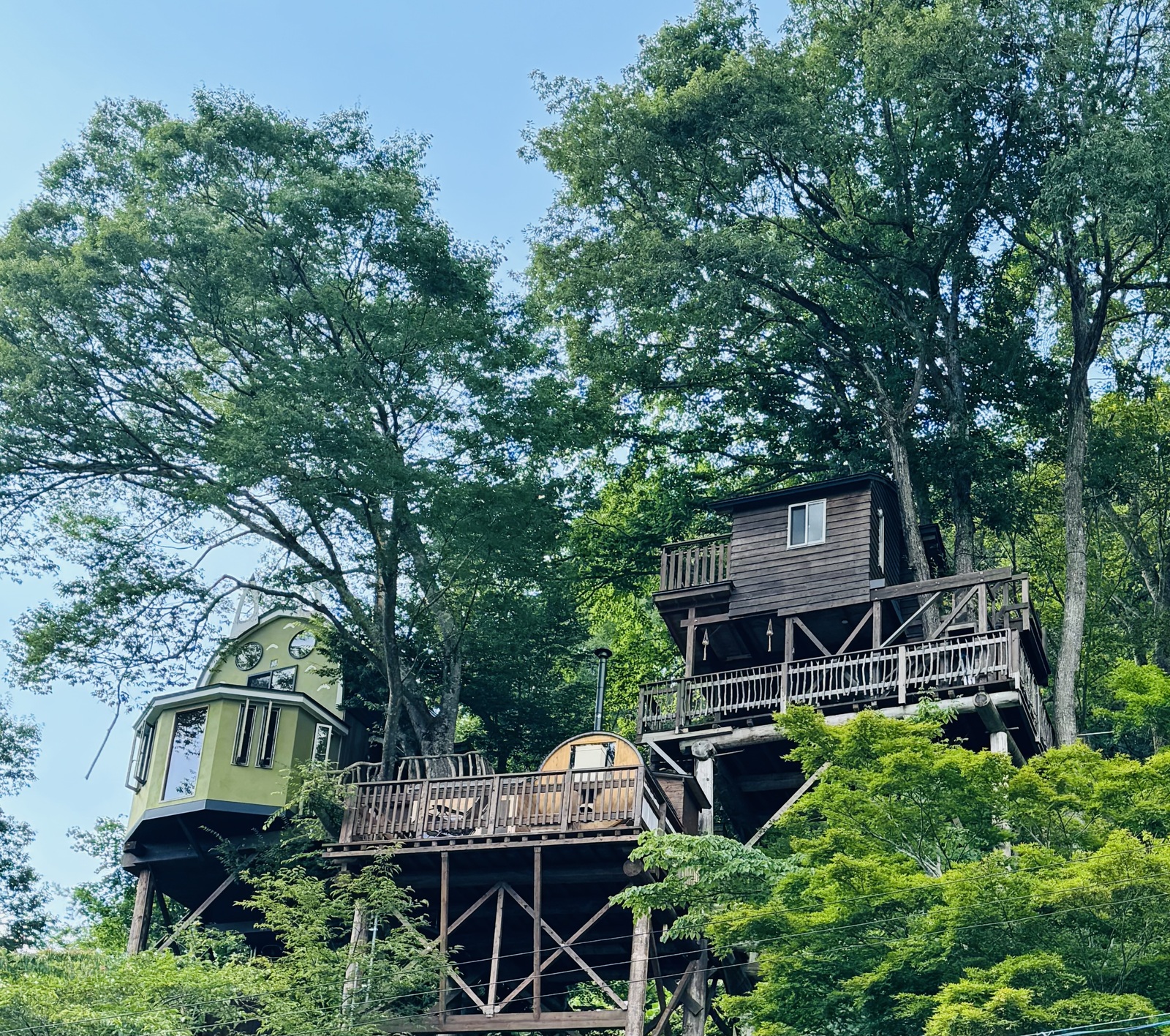 大ケヤキに抱かれたツリーハウスは、木の温もりと絶景が魅力のプライベート空間。国産ヒノキのバレルサウナや天然水の水風呂、秘密基地のような別棟も備え、自然の中で心ゆくまでリラックスできます。特別な癒しの休日をどうぞ