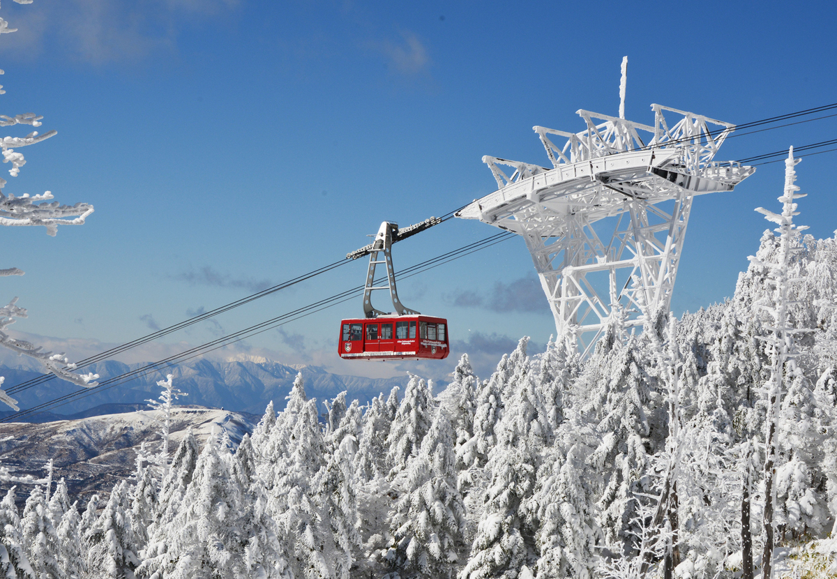 国内屈指の標高が生み出す至高のプレミアムスノーと樹氷に包まれたロングコース。2237mから4kmのダウンヒルコース。ロープウェイ1本リフトは2本で、ゲレンデは初心者から上級者まで楽しめる7コースを揃えています。