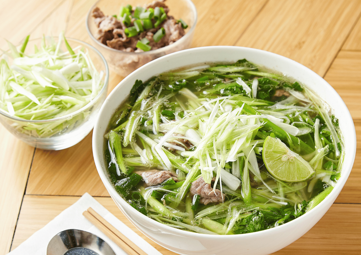 北アルプスの水で7時間丁寧に煮込んだスープと、柔らかな牛肉が自慢のフォー。牛骨と豚骨を合わせた旨みが広がる一杯を栂池で!ネギやチリソース、ライムで味変も楽しめます。
