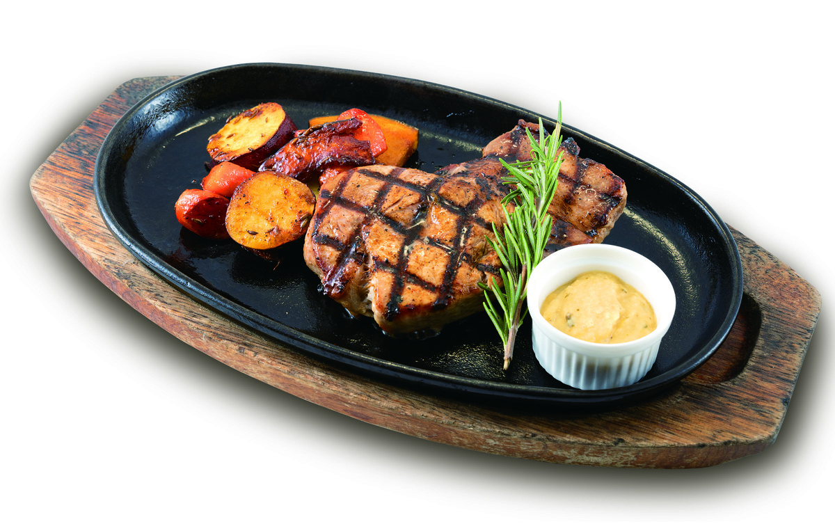 長野県産信州ポークにスパイスが効いたグリル料理。リンゴのソースでお召し上がりください。