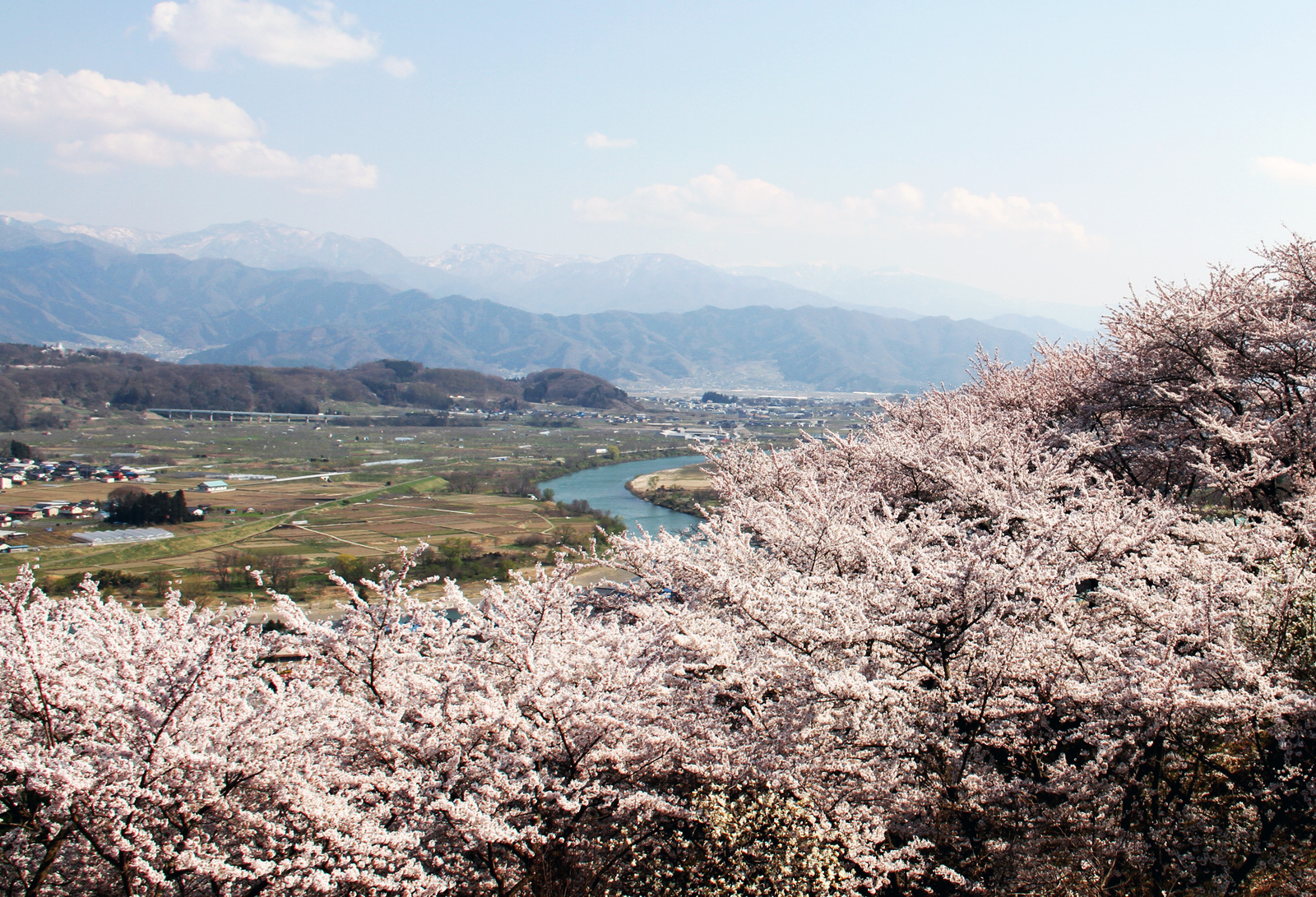 武田信玄により築城、800本の桜が植えられ、春には、ピンク一色になる。もみじ荘と遊歩道で結ばれています。