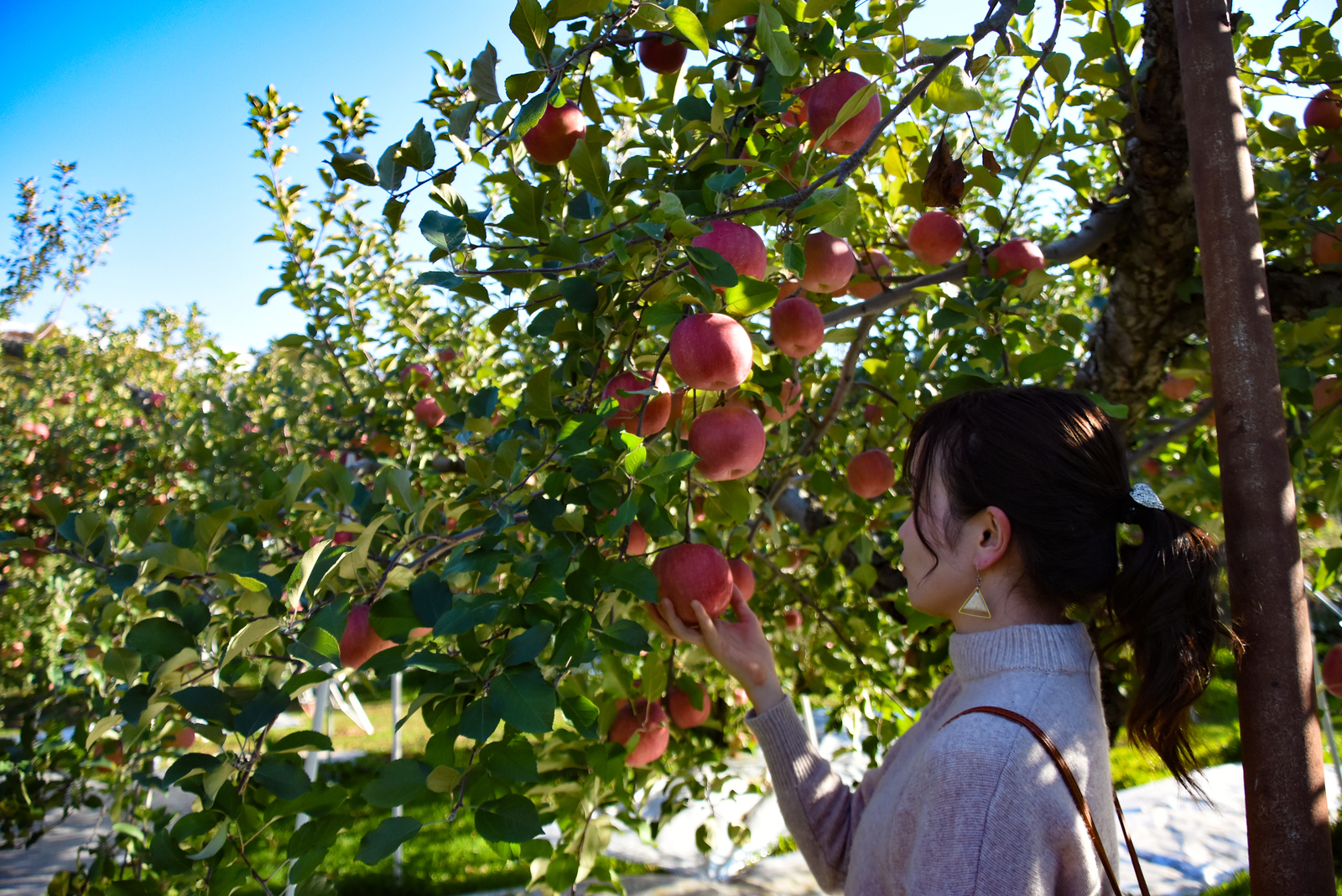 ぶどう狩りは8月下旬から10月中旬頃まで(品種は藤稔・ナイヤガラ・種なし巨峰・ピオーネ・スチューベン、シャインマスカット、瀬戸ジャイアンツ)、りんご狩りは8月下旬から11月中旬頃まで(品種はサンつがる・秋映・紅玉・シナノスィート・王林・シナノゴールド・名月・サンふじ)。その時期に一番おいしい品種を収穫することができる。