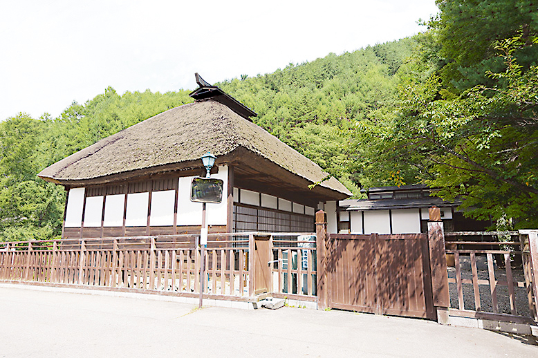 1832年に芝居小屋として建築された茅葺屋根の建物で、建物の中央には江戸時代に盛んに行われた村芝居の名残である廻り舞台が設けられています。