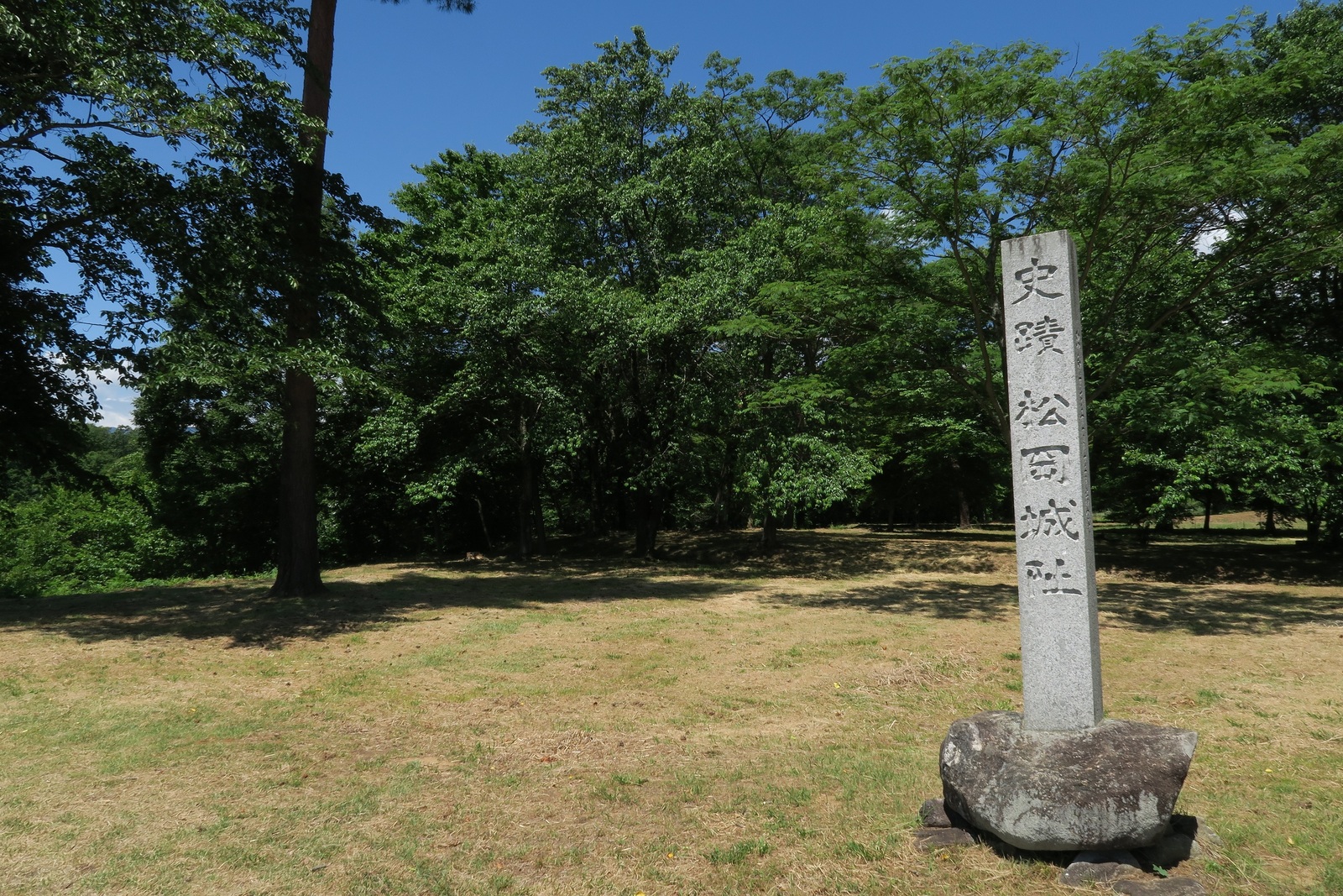 11世紀~16世紀、この地域の統治者であった松岡氏の城跡で、段丘上の天嶮に築かれた平山城です。