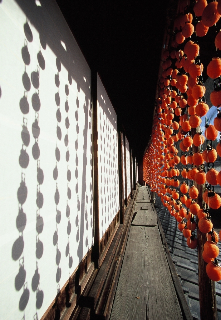 伊那谷の特産品「市田柿」は、当町が発祥の地。農家の軒下に吊るされた「かきすだれ」は、初冬の風物詩です。※現在、出荷されるものは食品衛生上、軒ではなく屋内で吊るされています。