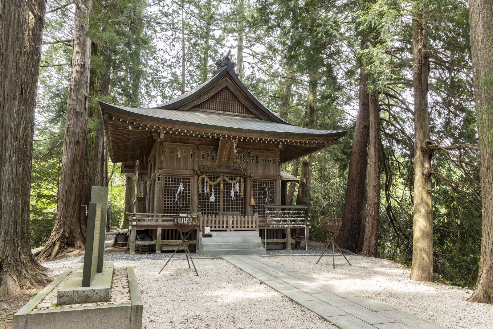 智恵と学問の神・政治の神・開運の神・建築土木の守護神が祀られています。昼神温泉郷を一望する高台には前宮、温泉郷の中央を流れる阿智川上流には奥宮と二つの社に分かれており、広く参拝されています。