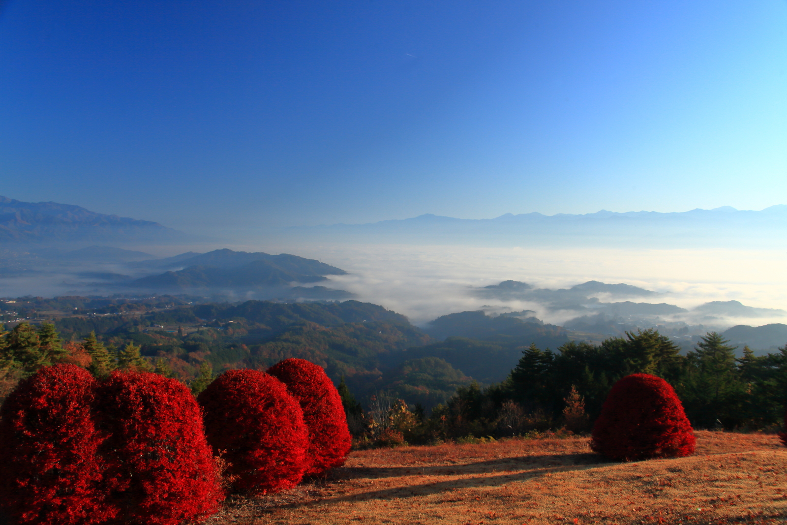 標高994m。付近は白樺やブナの林が繁る長野県自然100選の一つ。伊那谷の眺望は絶景。