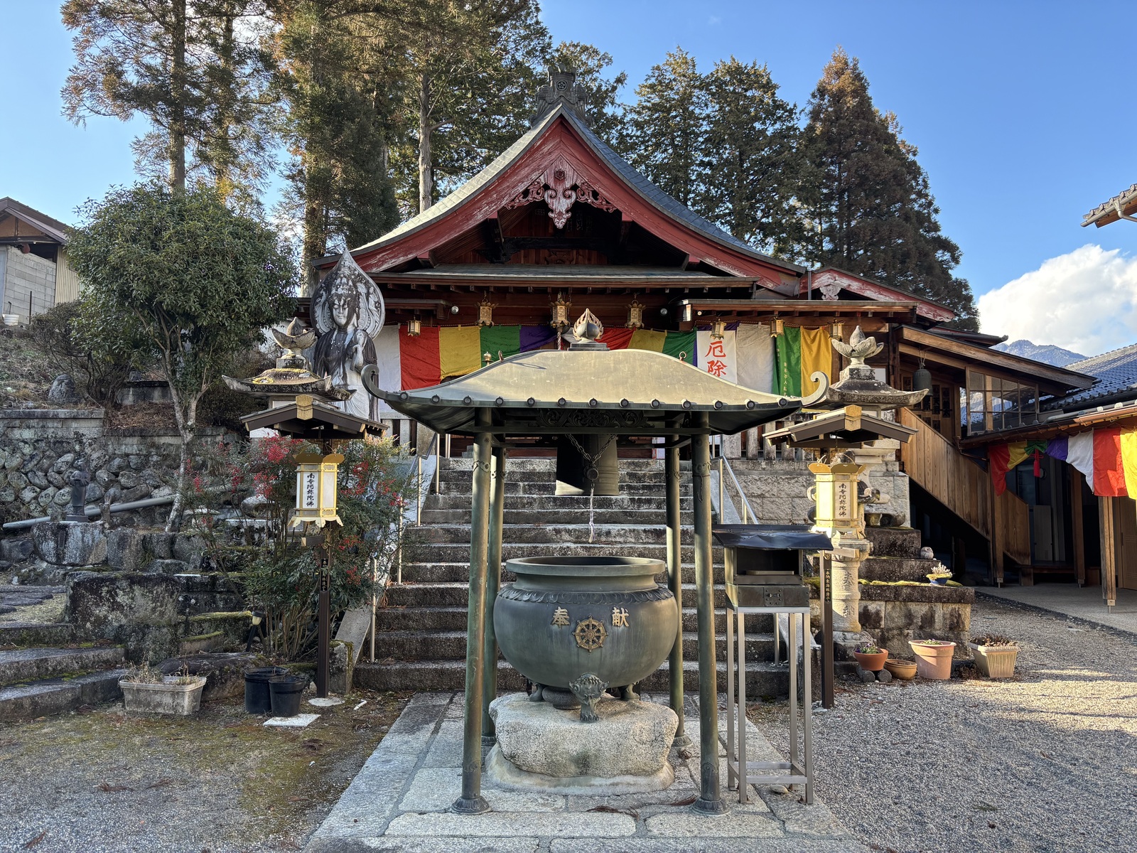 飯田市街地を見下ろす境内の一隅には鐘楼が配置されています。傍らには第二十三世住職 萱垣幸道筆による「祈り三鐘」の碑が立てられています。また、江戸時代初期から中期にわたって奉納された、西国三十三札所の観世音菩薩の尊像が配置されております。