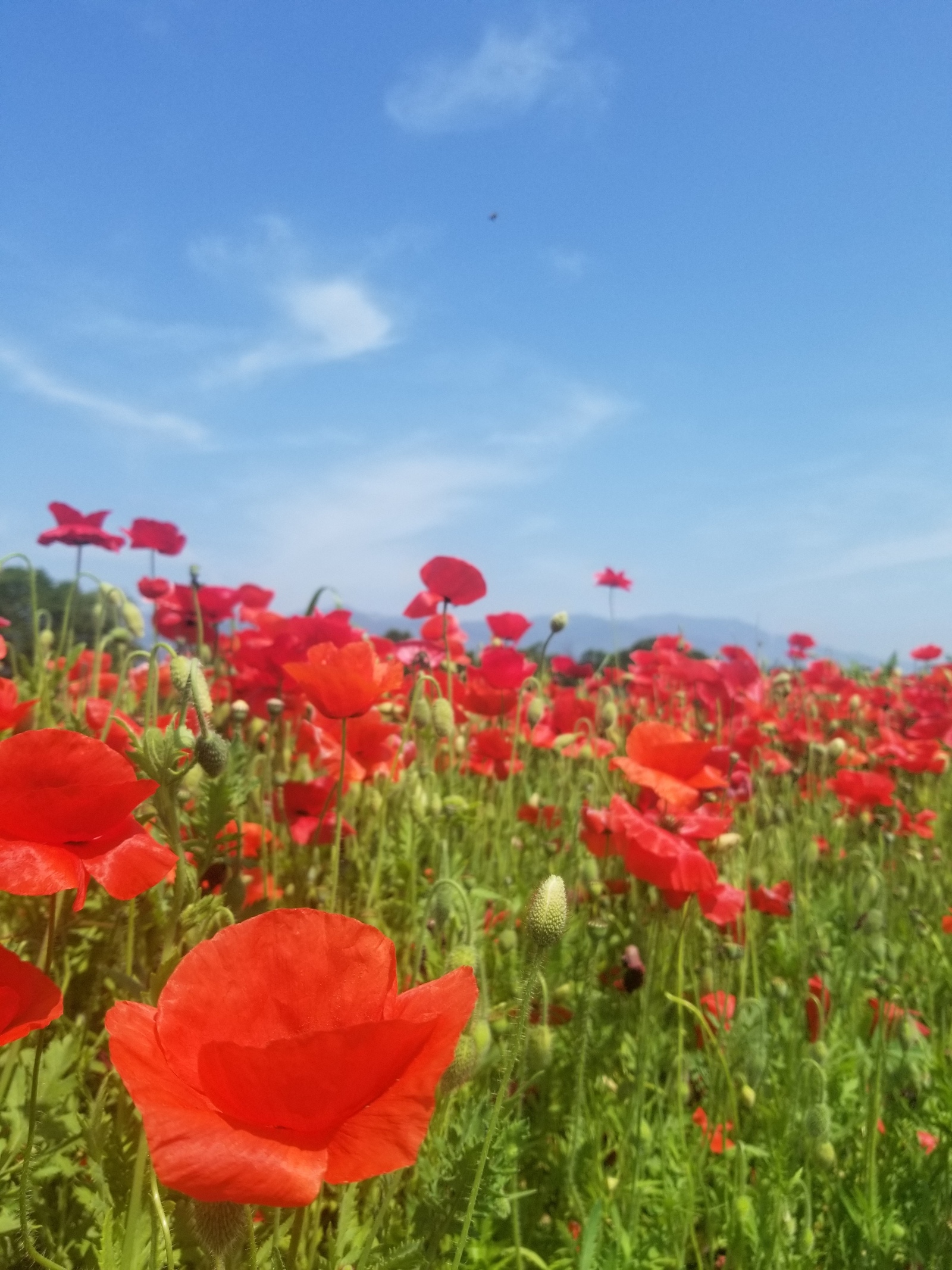 5千㎡の敷地に約4万株のポピーが咲き乱れます。協力金200円で10本摘み取り付。