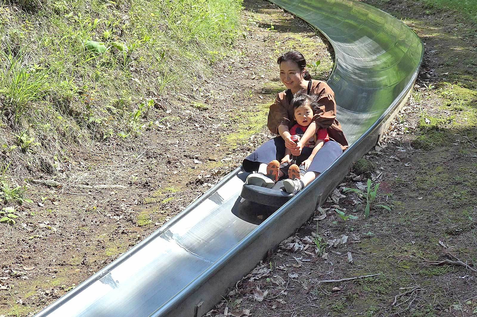 全長710m標高差120mの中部圏最長を誇る聖高原スカイライダー。銀色のレールを滑り降りる気分は最高です。