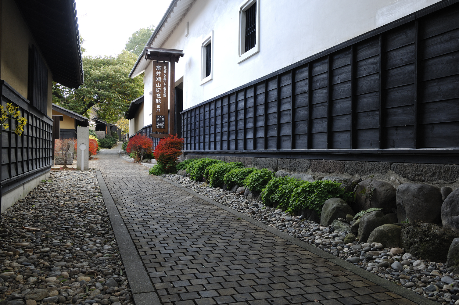 名産の栗の木を敷き詰めた道は、木の感触が足に優しいやすらぎの小径。土色の壁と瓦屋根がコントラストとなって情緒ある空間を生み出しています。