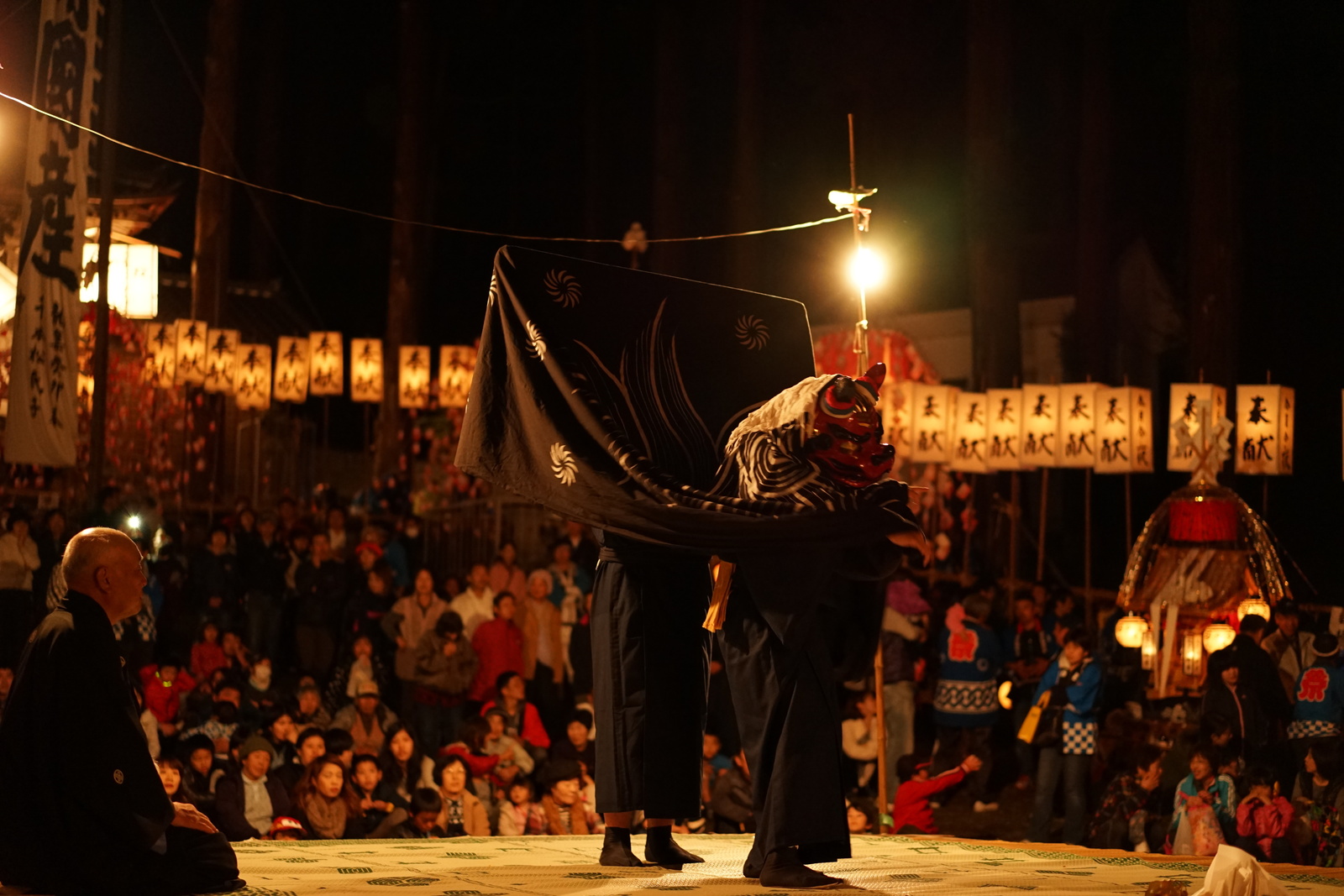 収穫を祝う秋祭りは、村内各地の神社で執り行われる。それぞれの集落に伝わる神楽や獅子舞などが披露され、夜遅くまで賑わう。