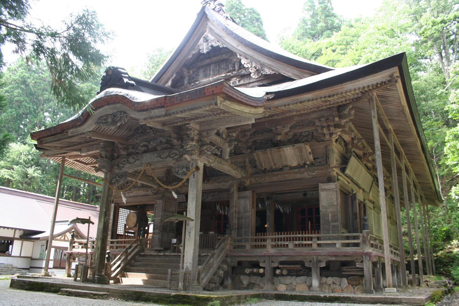 杉の古木の中、270余段の石段を登ると神仏習合時代の面影を残す荘厳な社殿が見えてきます。