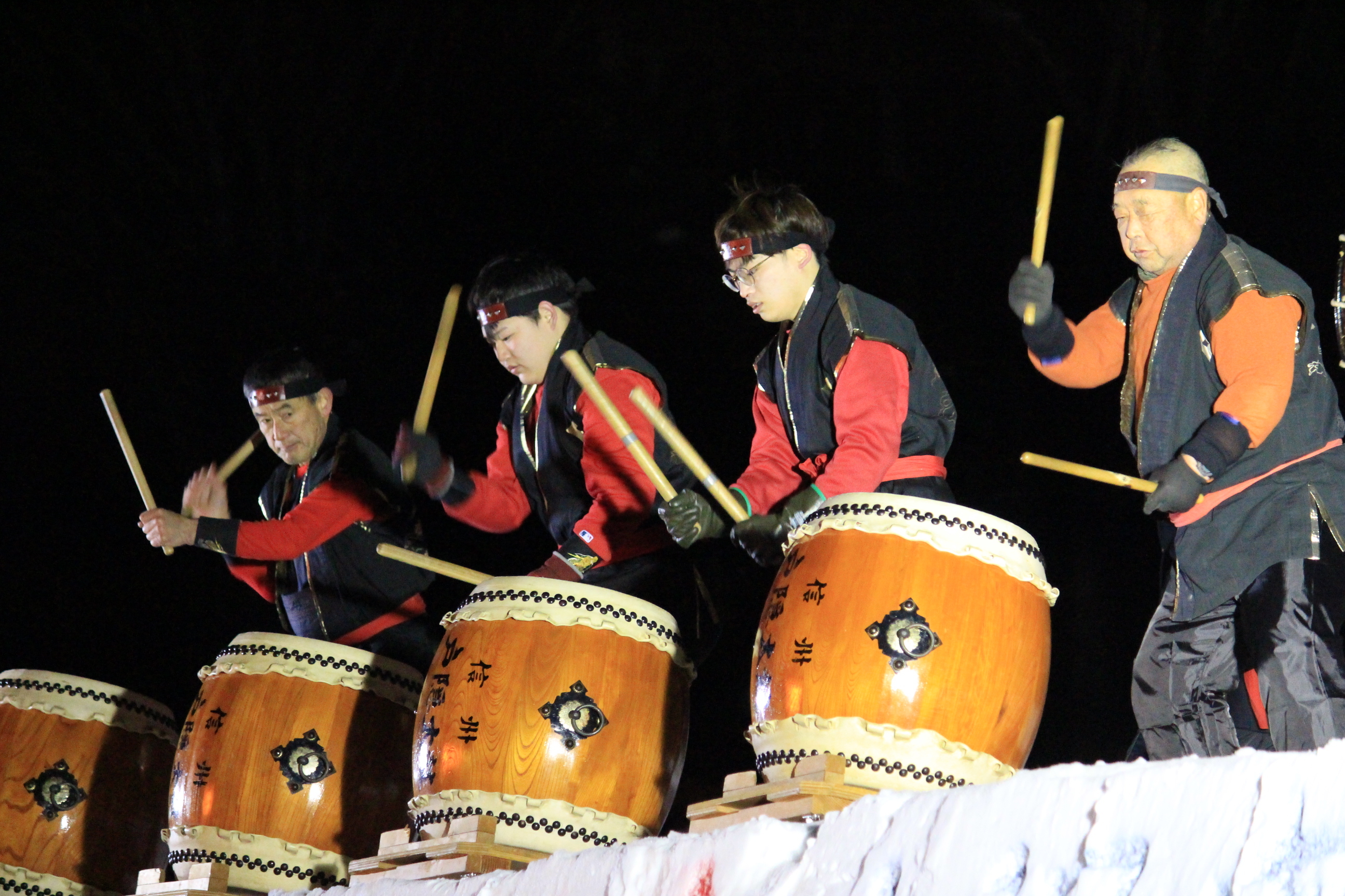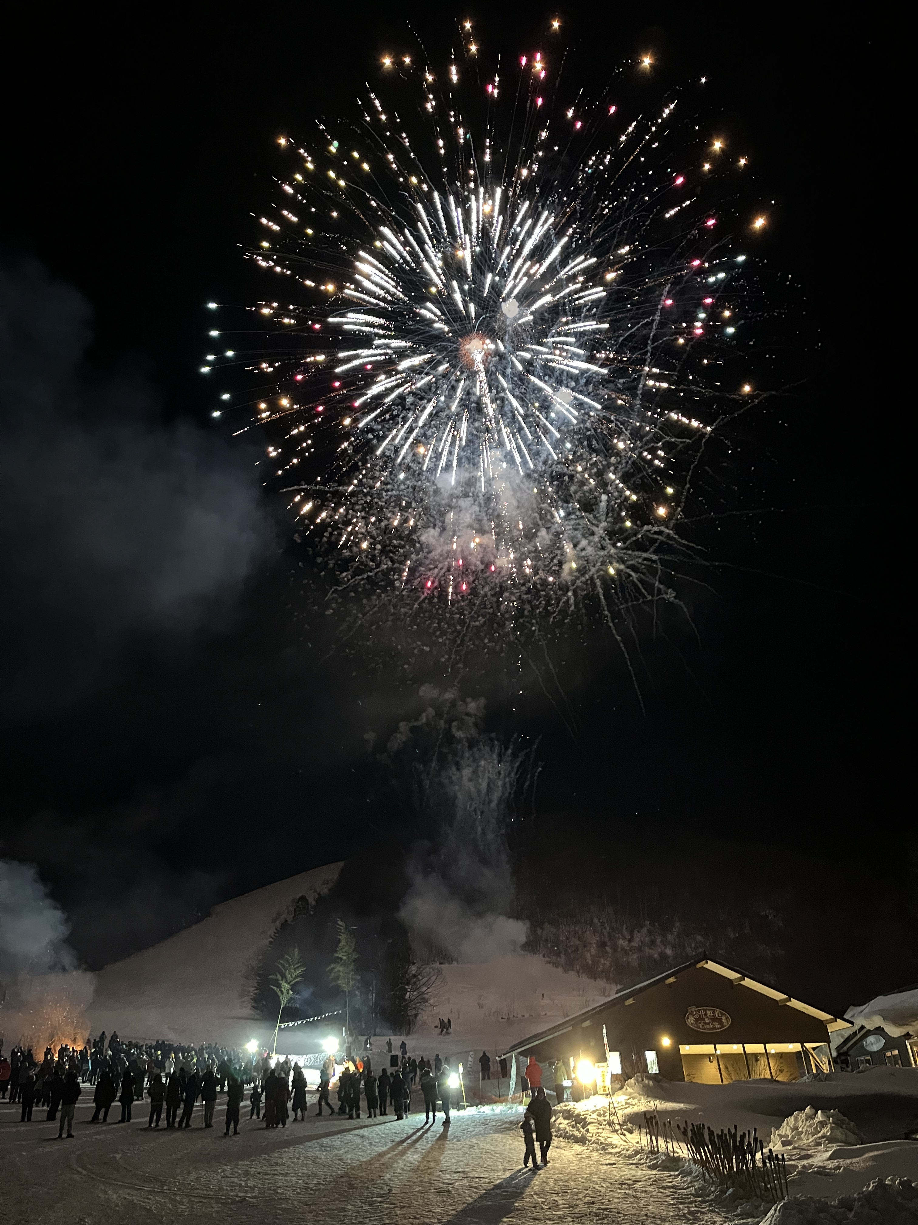 極寒の冬の夜、白銀のゲレンデに打ち上る花火は大好評。