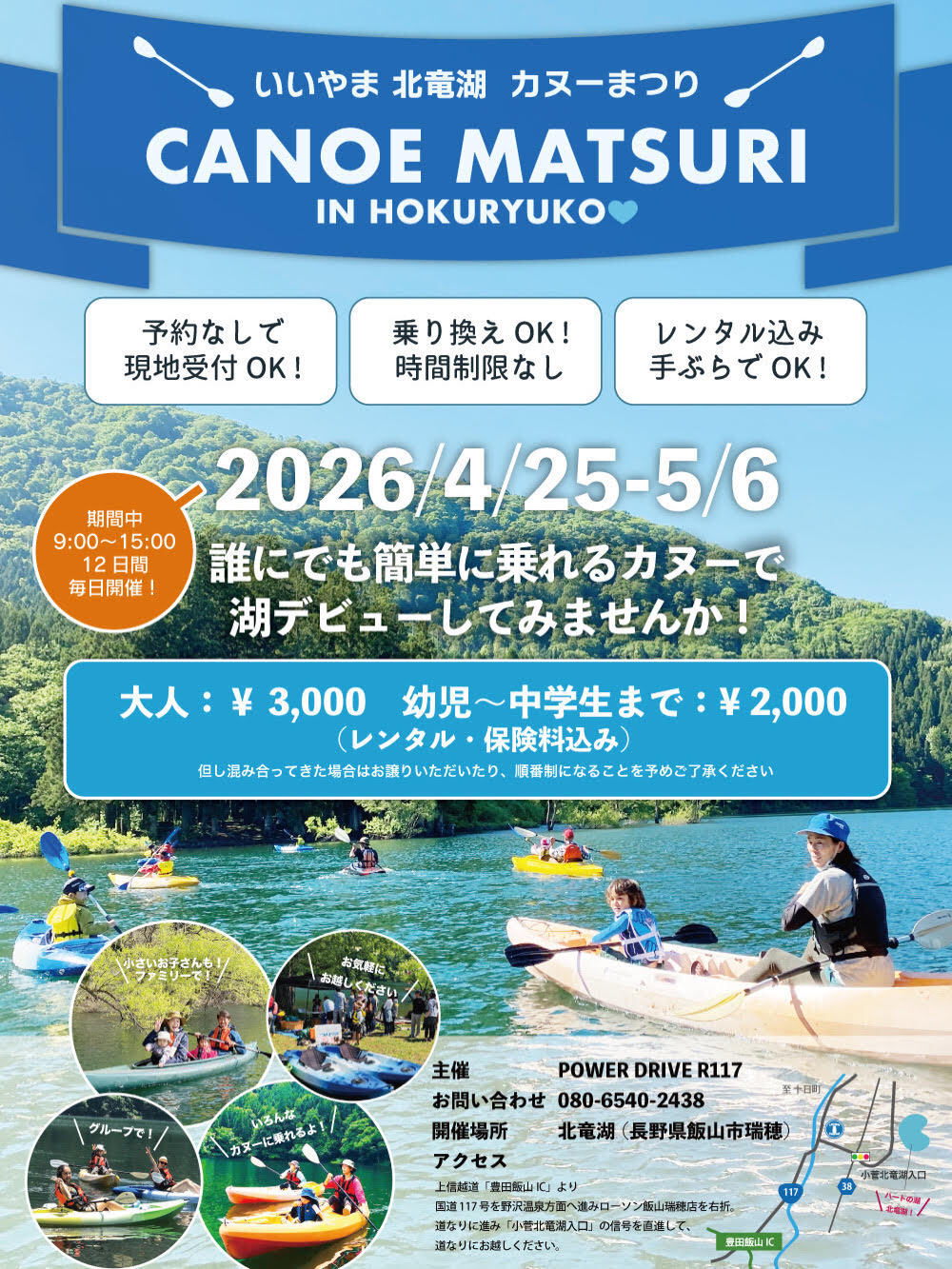 | 料金 | 大人3,000円/幼児~中学生まで2,000円(レンタル・保険料込み) |