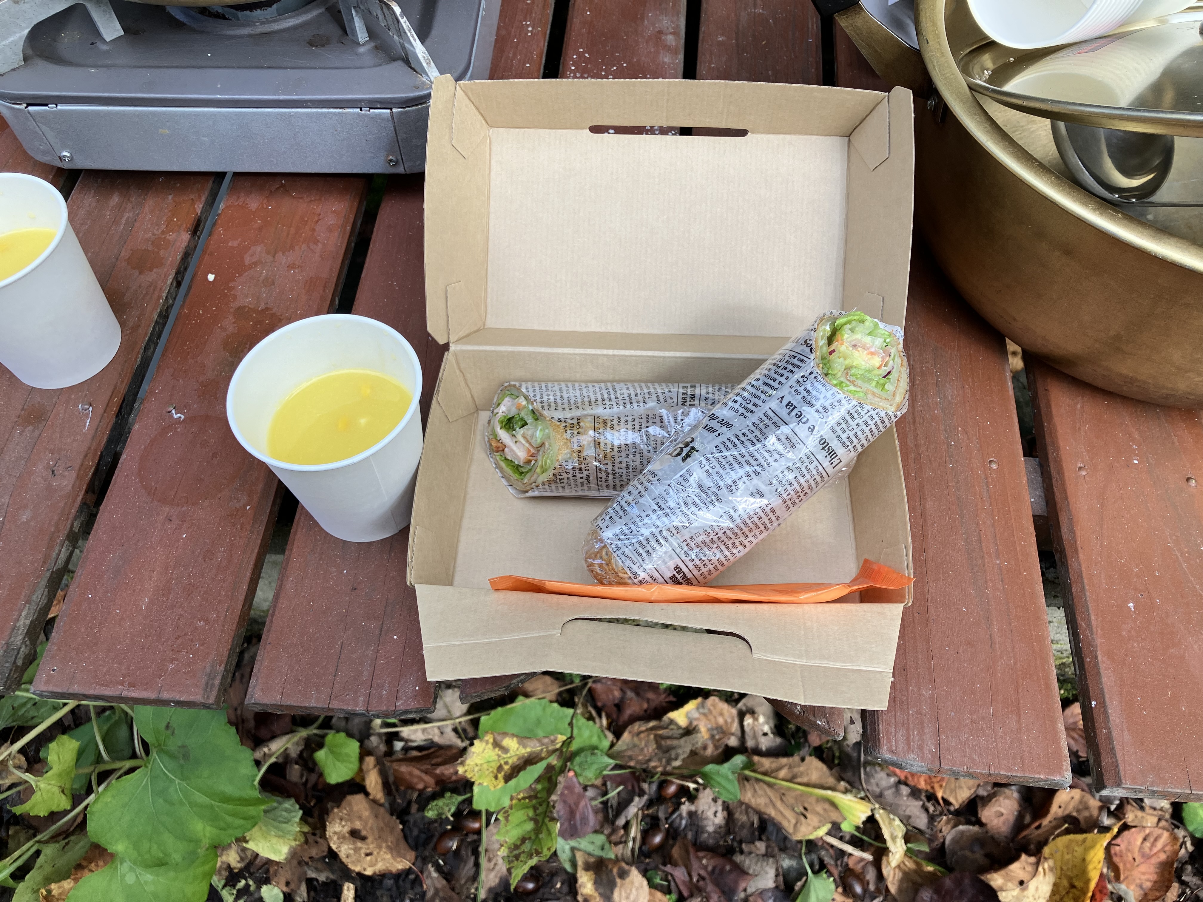 ◆焚火を囲みながら味わう鏡池どんぐりハウスで地元の味覚そば粉100%のガレットランチ