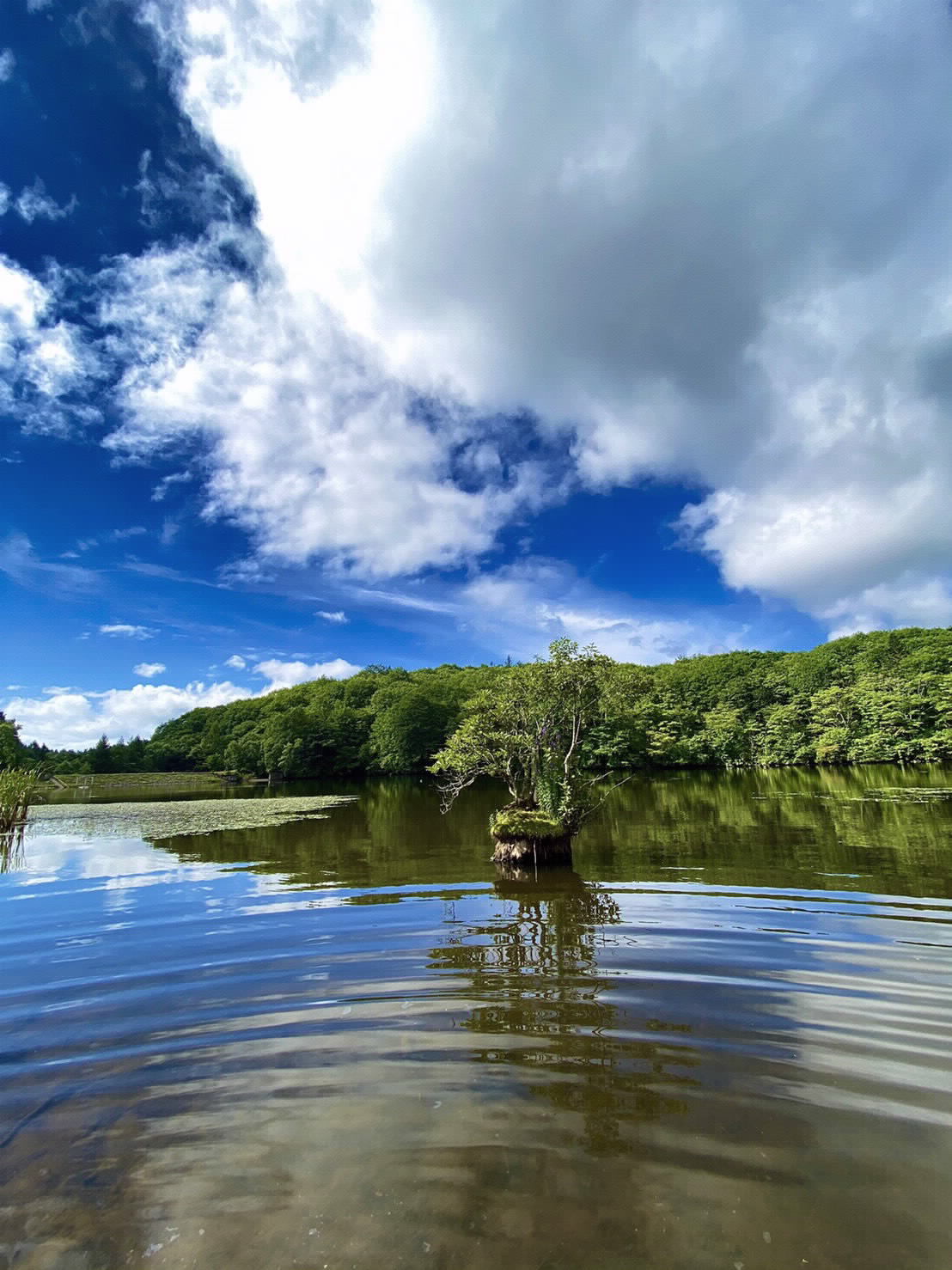 ◆自然保護のため通常はボートの乗り入れが制限されている国立公園内の鏡池で、新緑を水上から楽しむ